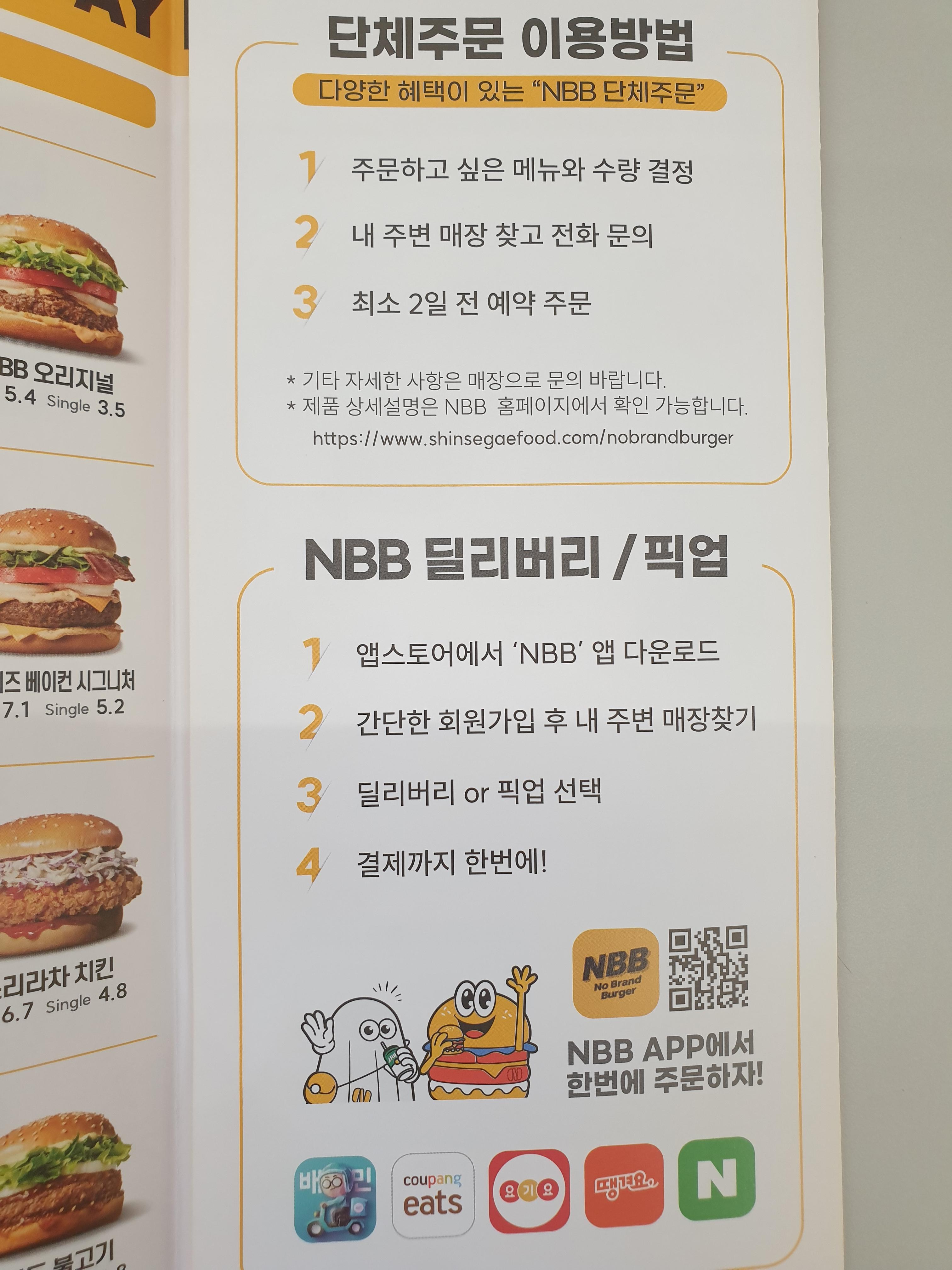 노브랜드 버거 단체주문 가이드가 있네요