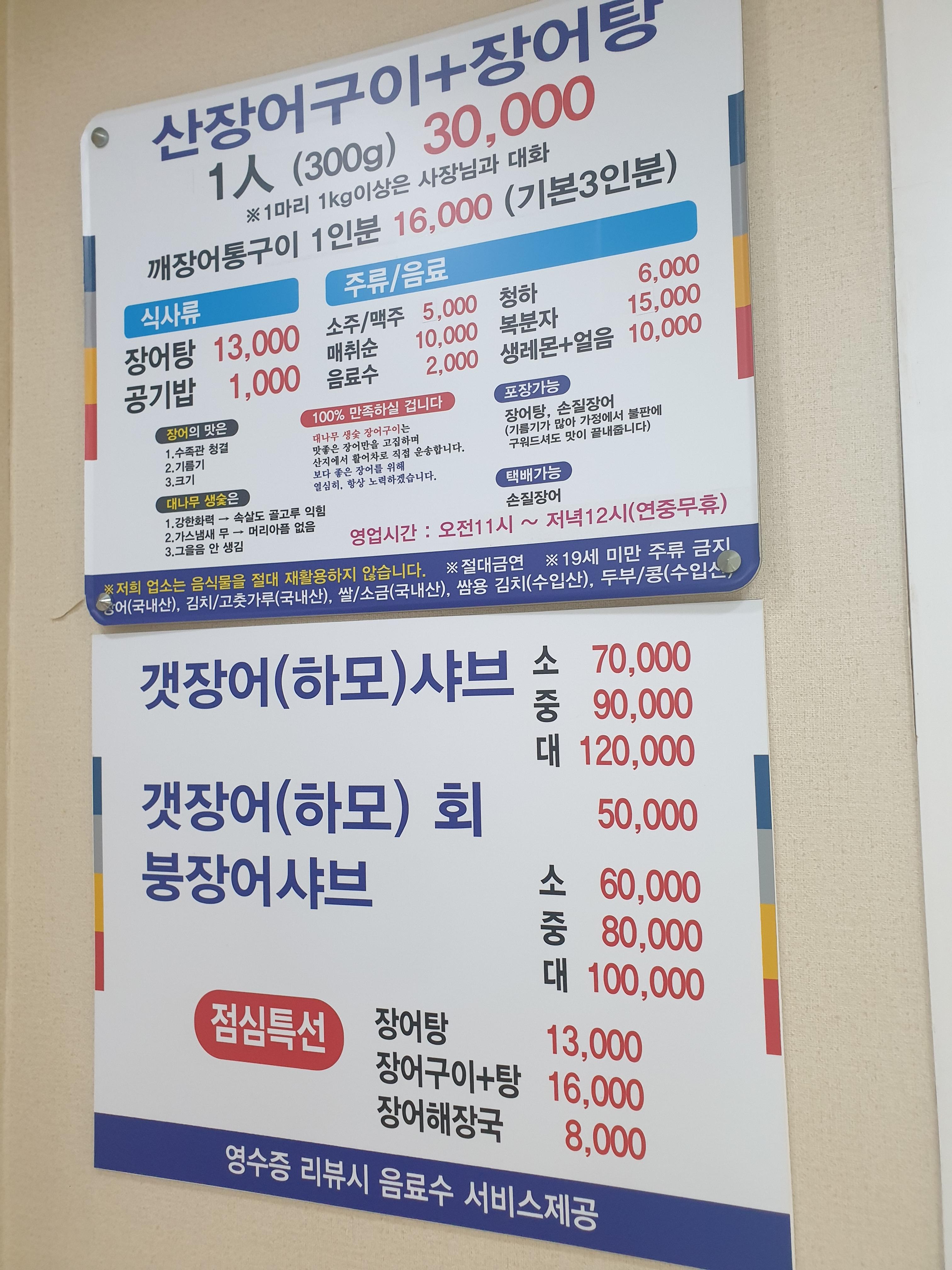 산장어구이와 장어탕 세트를 많이들 먹는다고 하구요