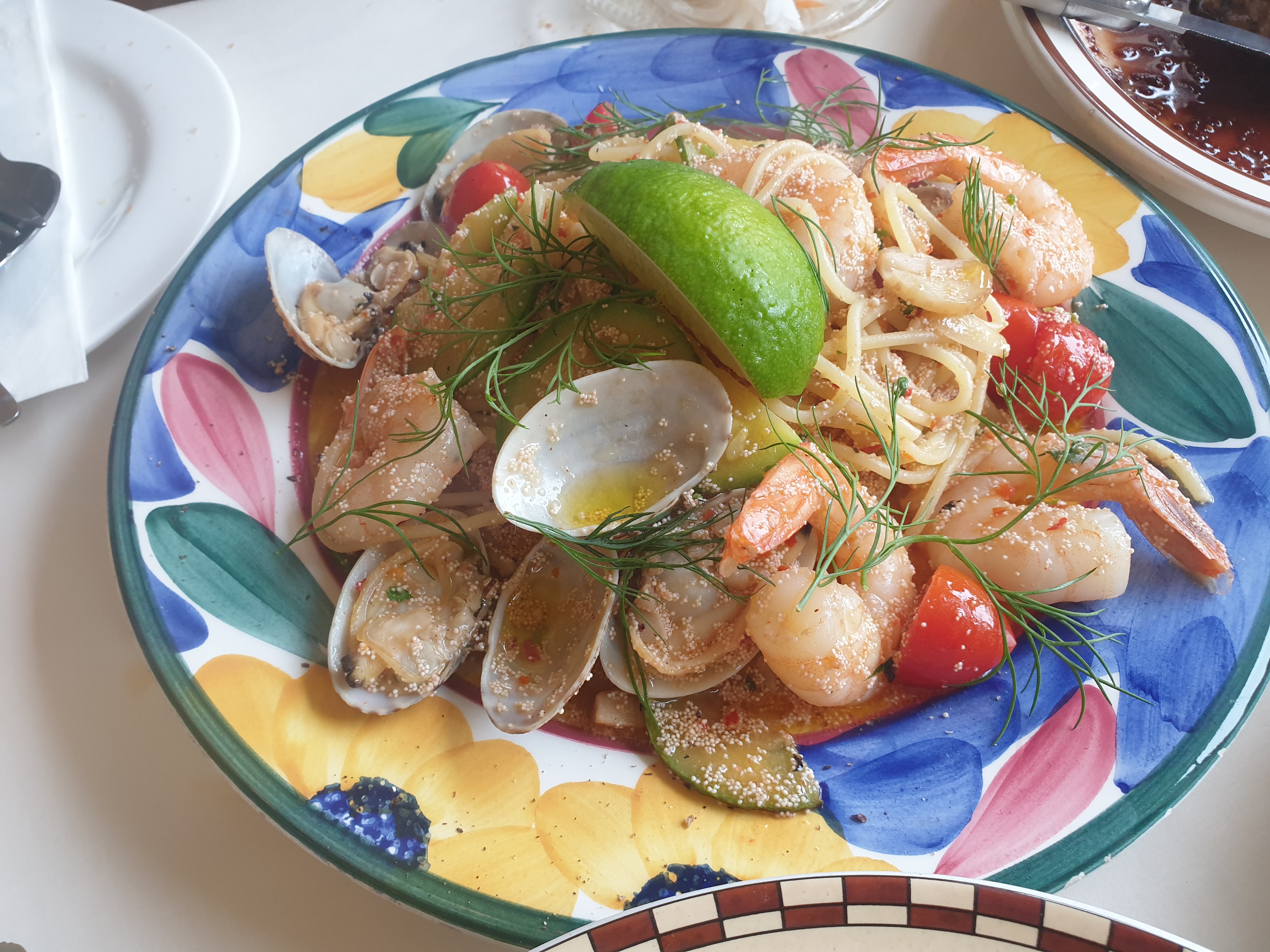 새우, 조개, 명란, 토마토, 호박, 루꼴라와