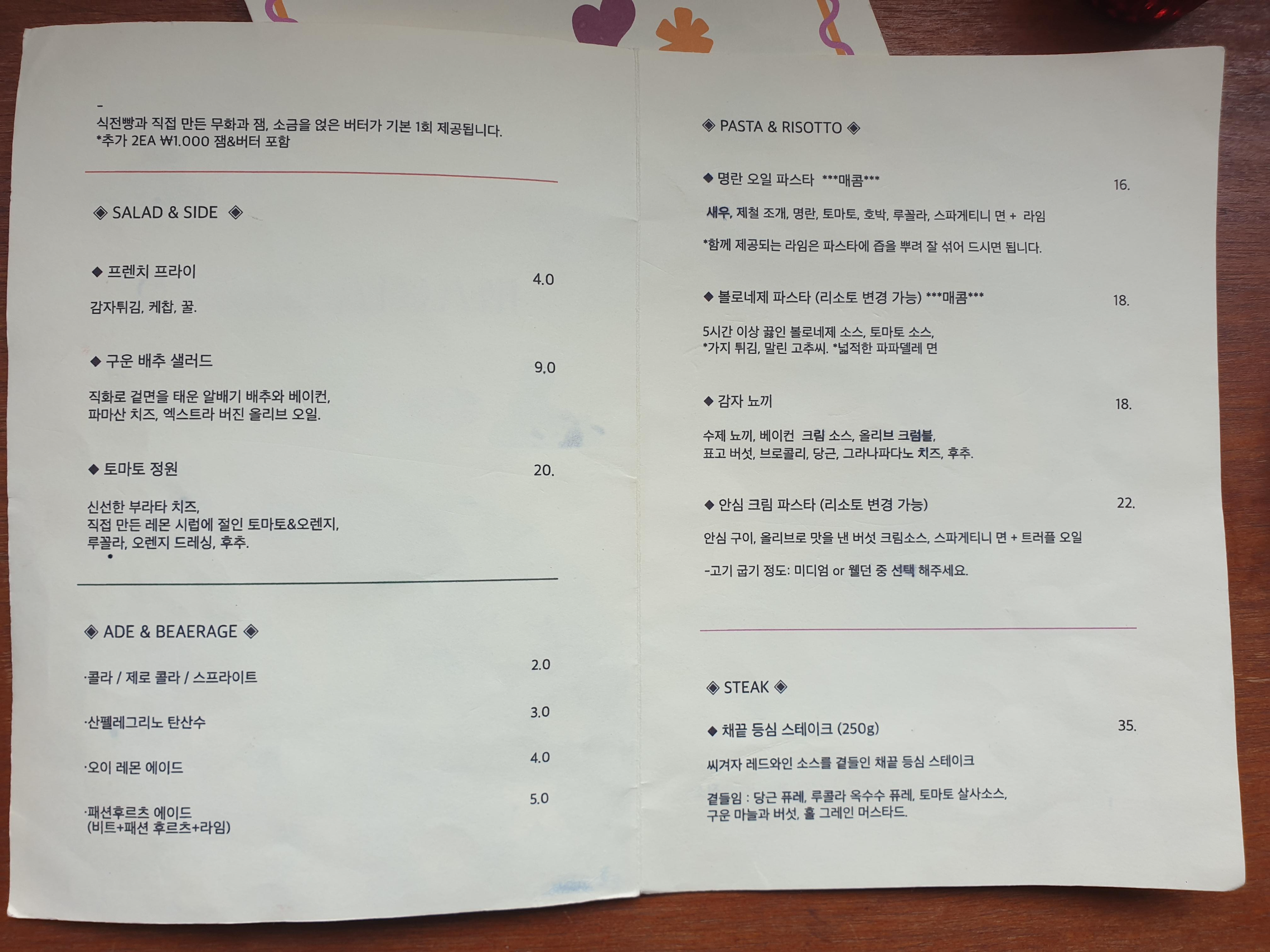 차만 가져오지 않았더라면 하면서 계속 봤던 메뉴판