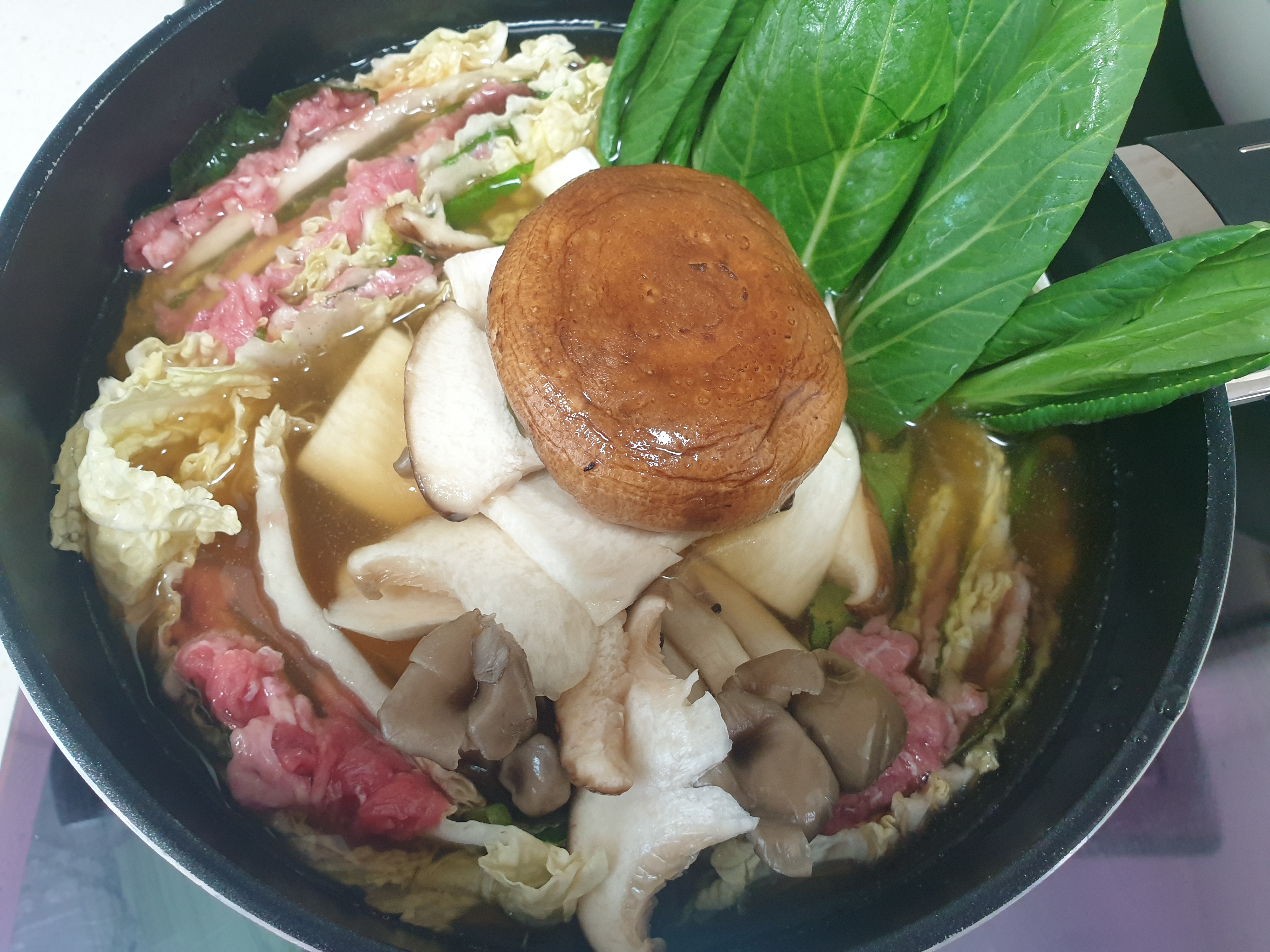 소고기가 겹겹이 피어나는 따뜻한 전골요리 밀푀유나베를 먹었어요