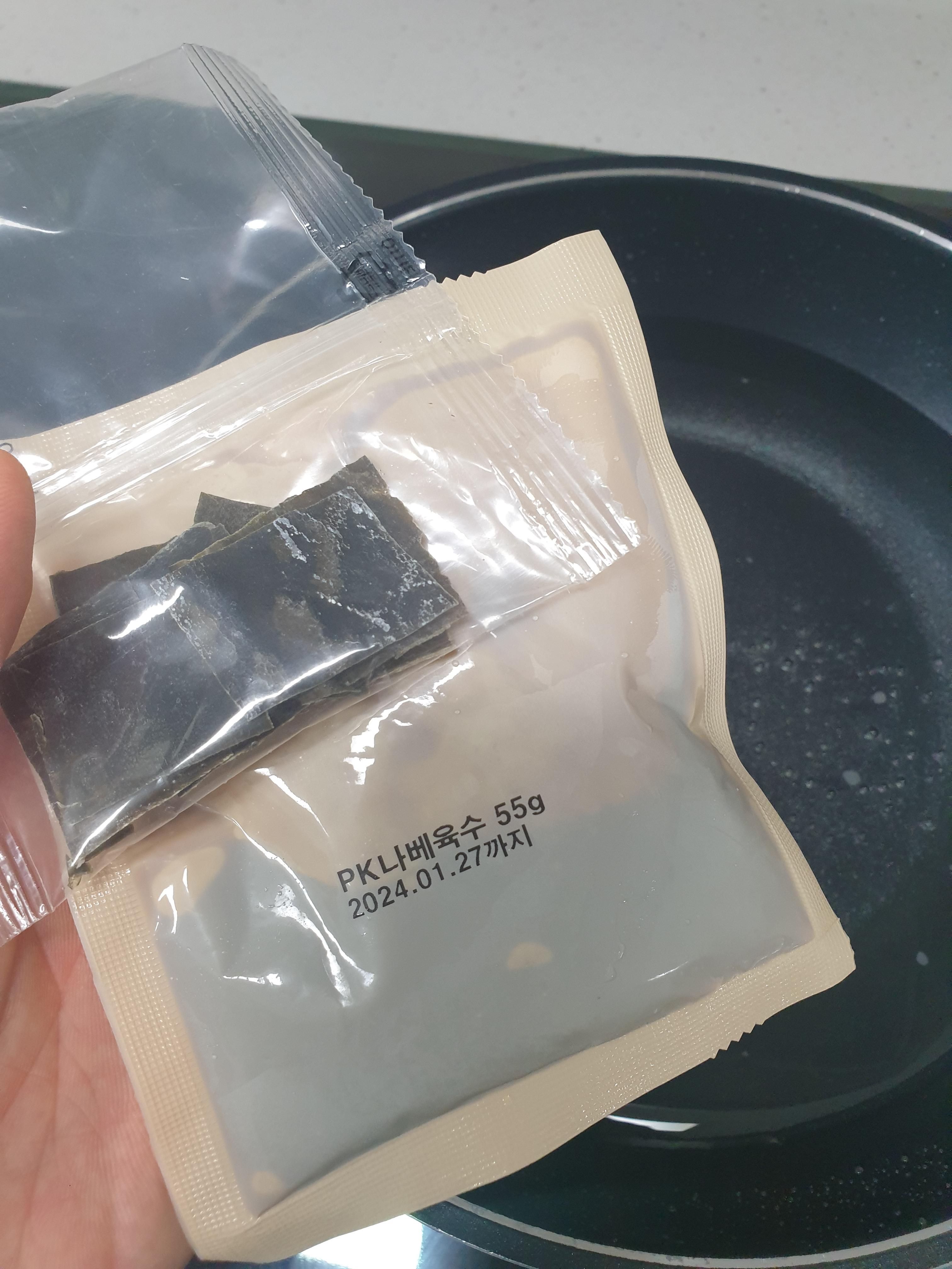 육수가 끓으면 다시마를 건지면 끝