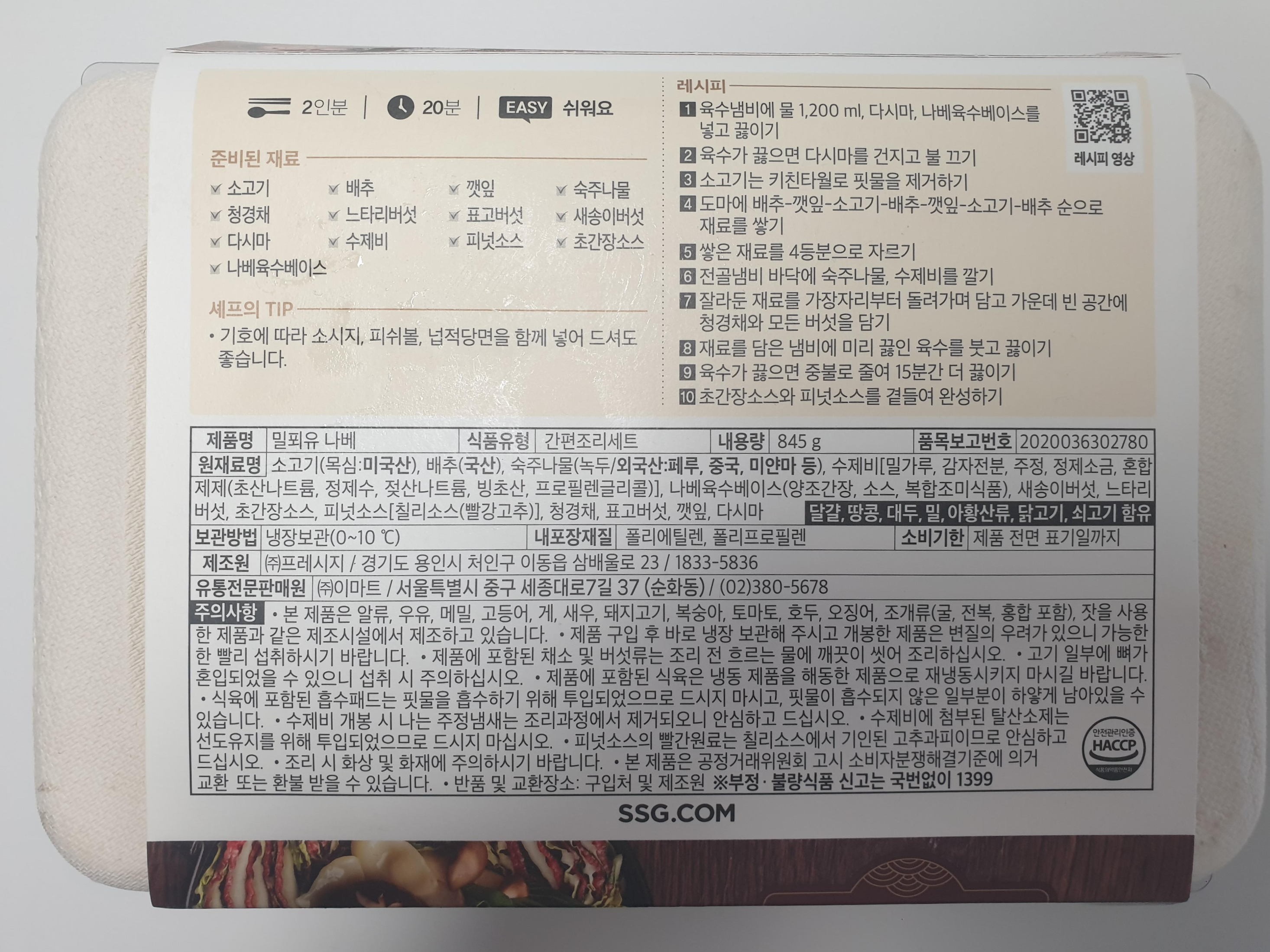 피코크 밀푀유 나베 상세정보