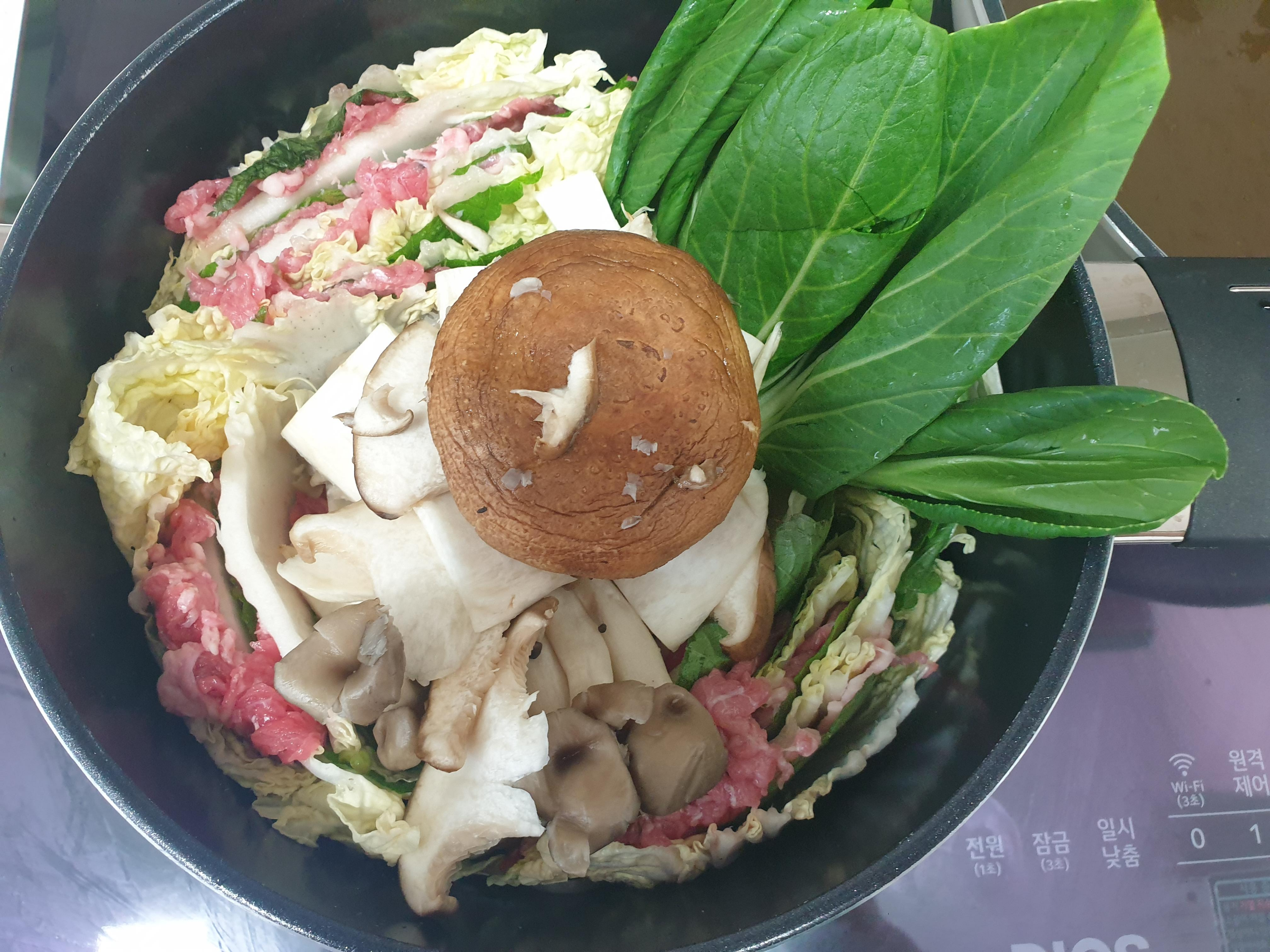 가운데 빈 공간이 생기면 버섯을 넣어주구요