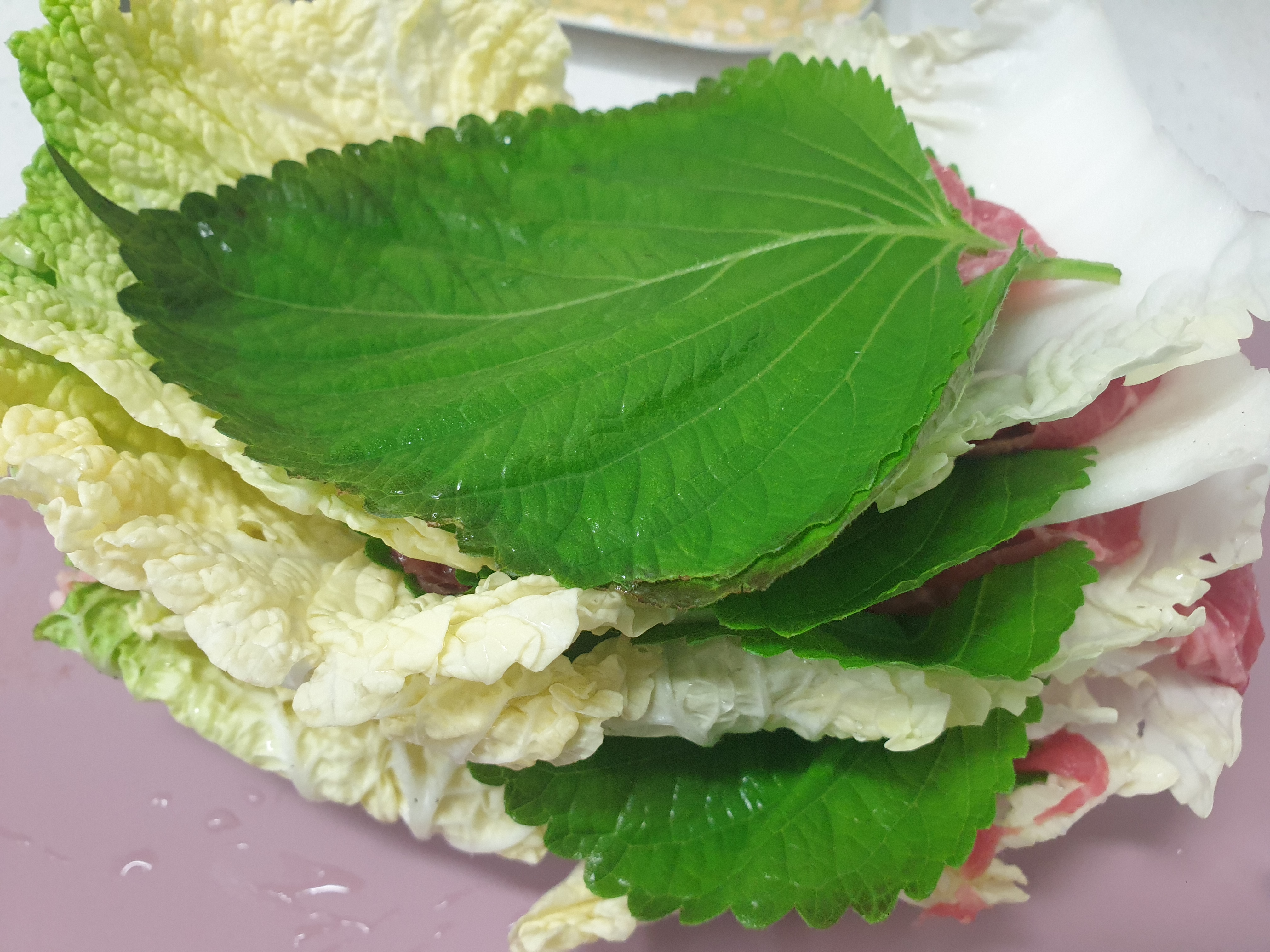 도마에 배추 > 깻잎> 소고기 순으로