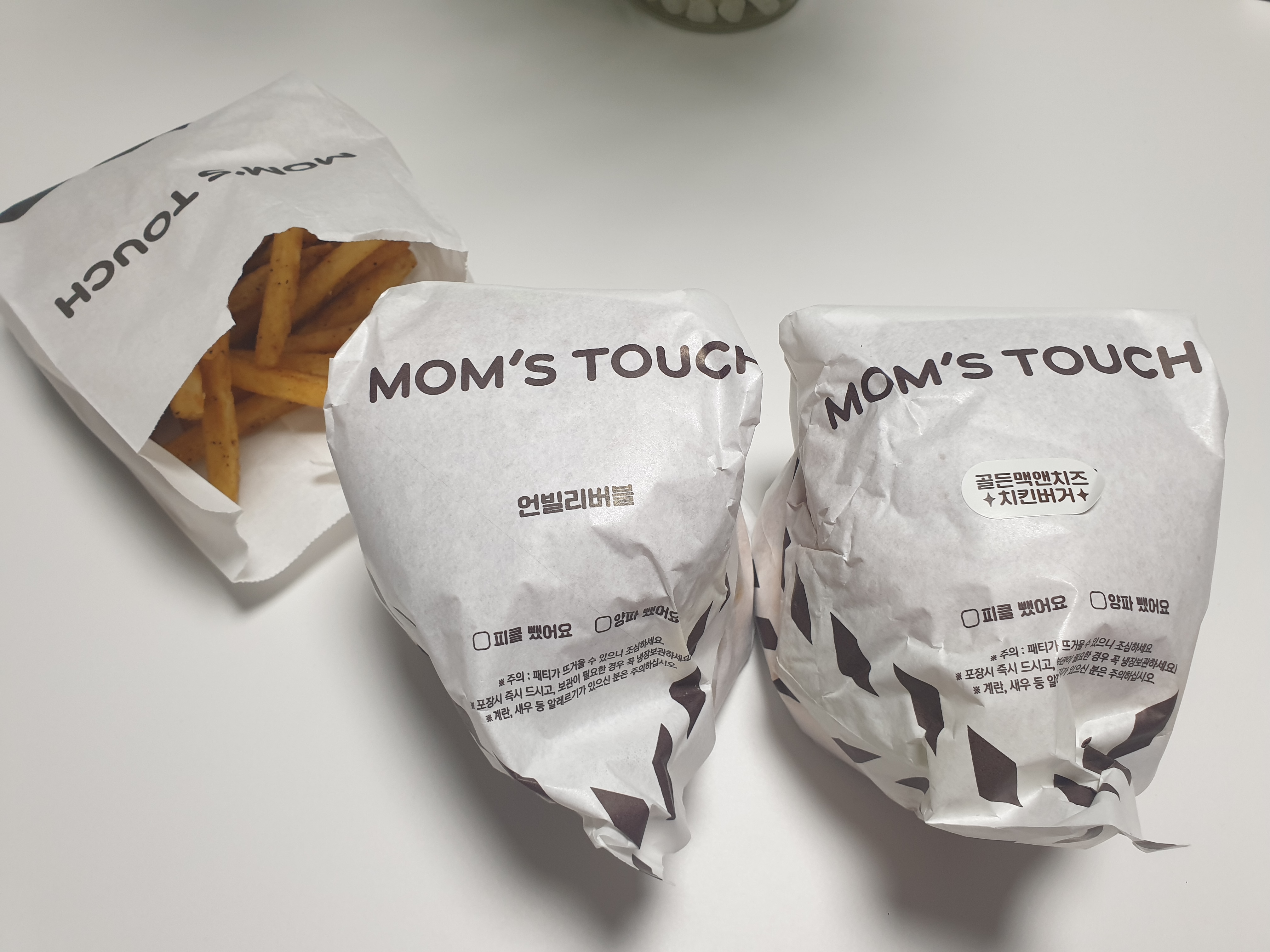 오랜만에 버거가 먹고 싶어 방문한 맘스터치 여수 웅천점 포장했어요