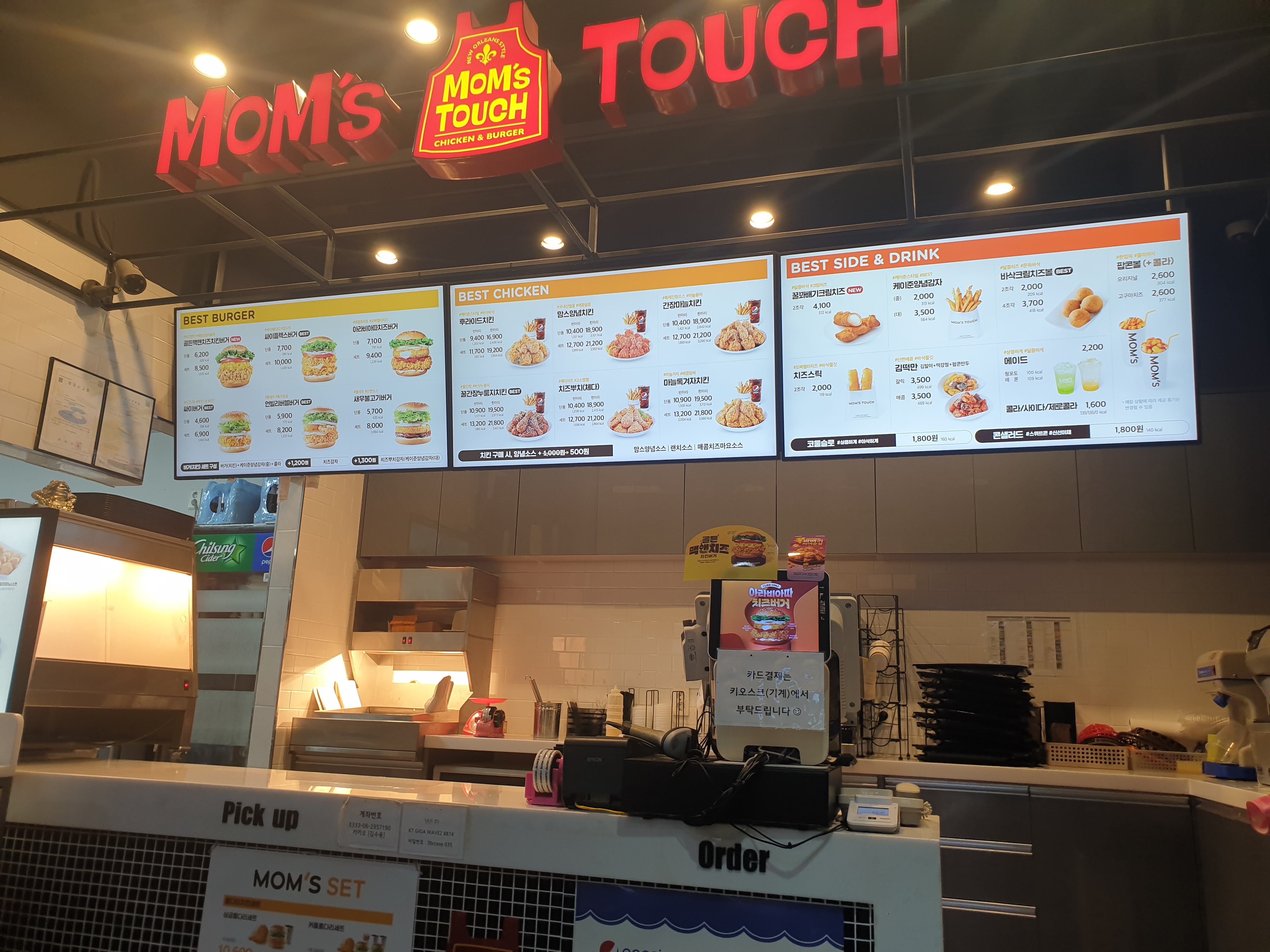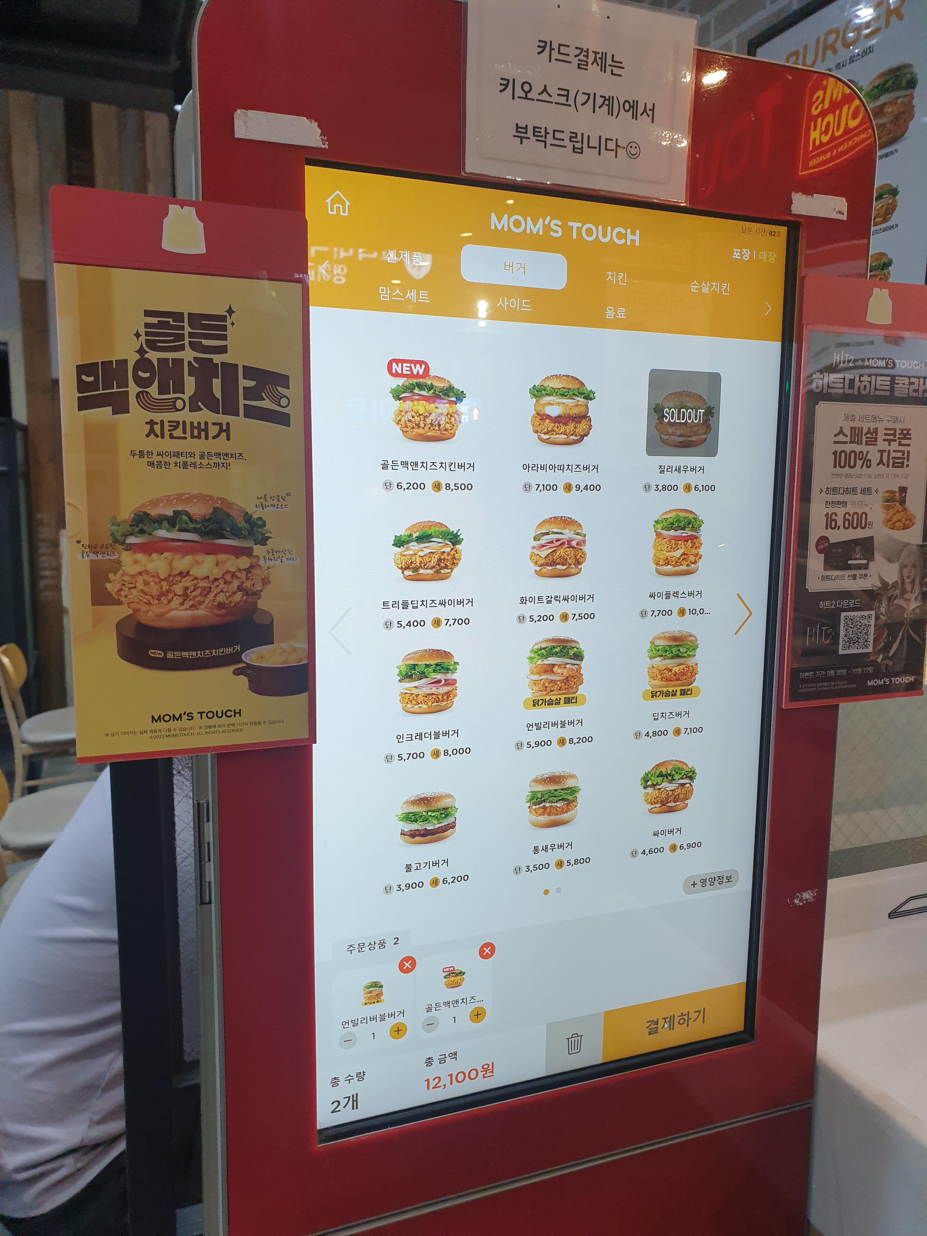 맘스터치는 키오스크에서 주문을 하는데요