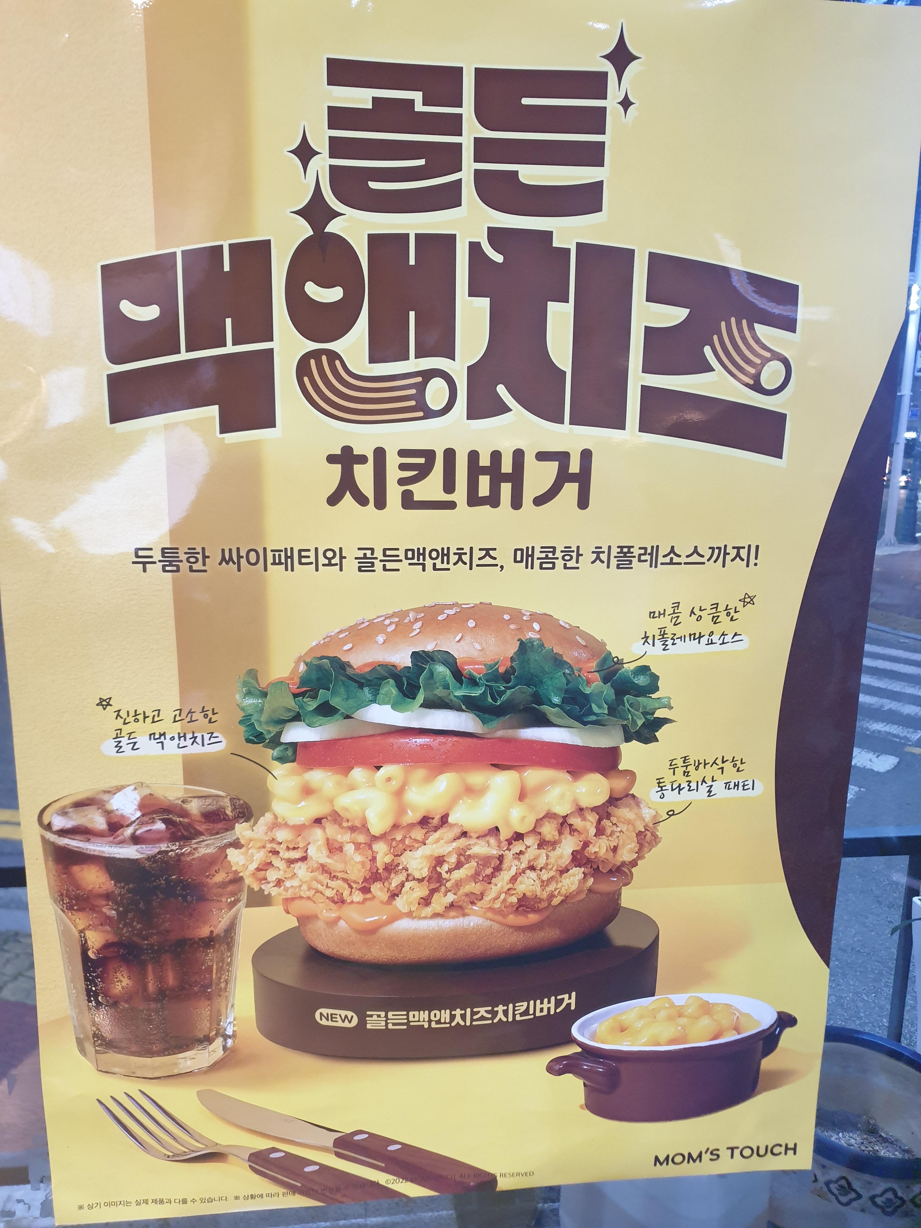 맘스터치 신메뉴 골든맥앤치즈치킨버거와