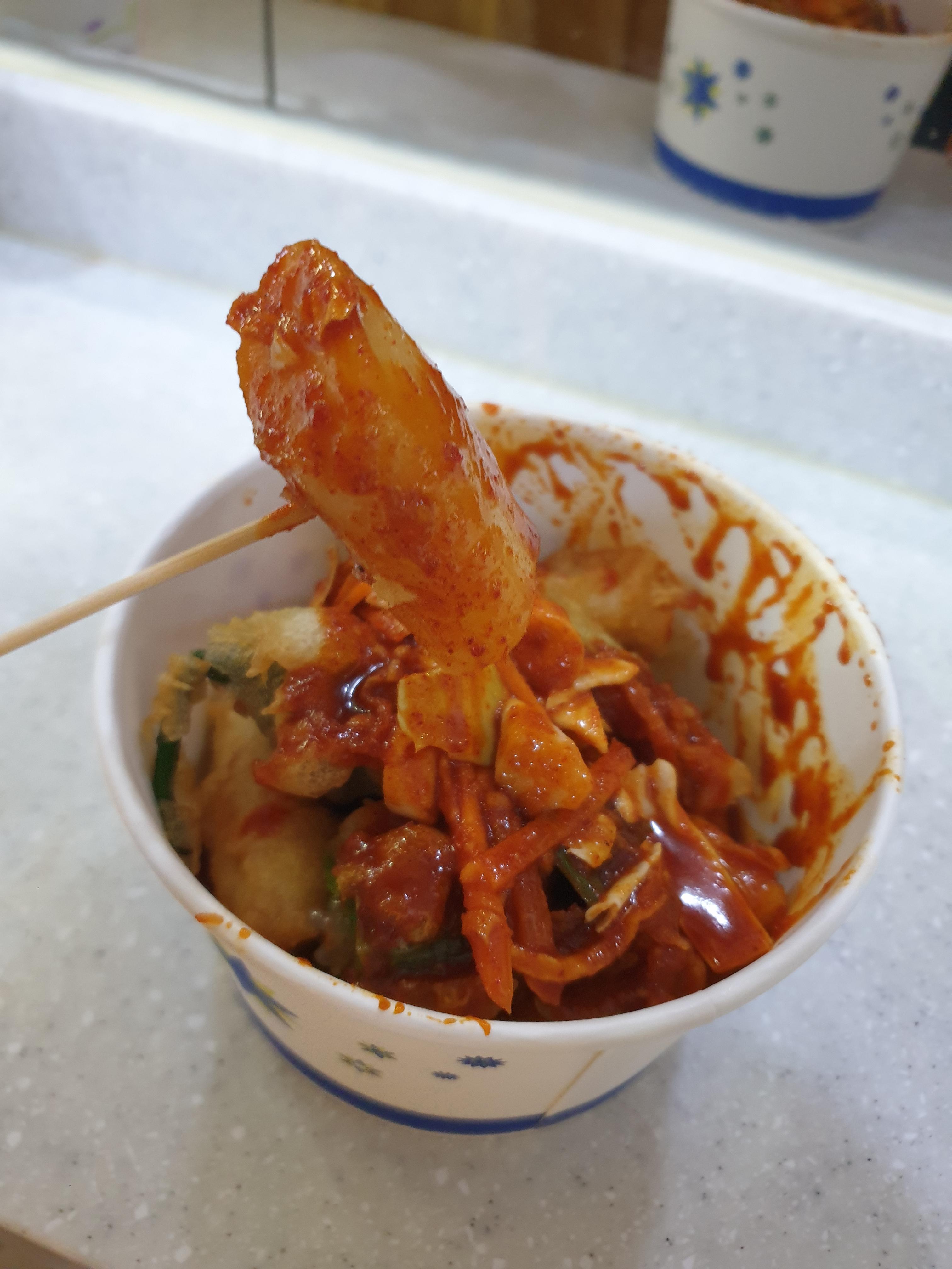 떡볶이가 살짝 매운 편이라서 호호 입을 불며 먹어요
