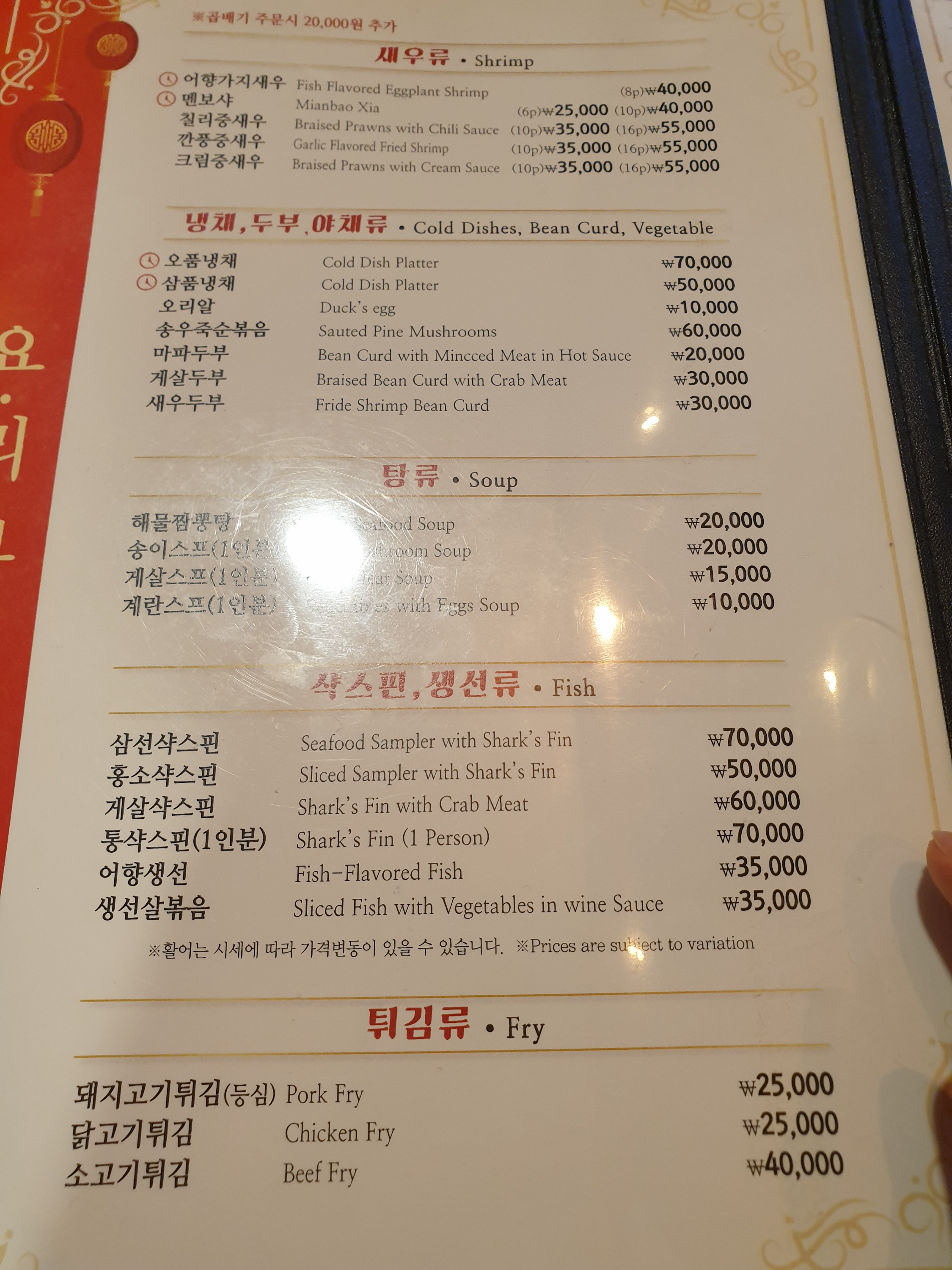 메뉴판을 받았는데 두꺼워서 놀랐습니다