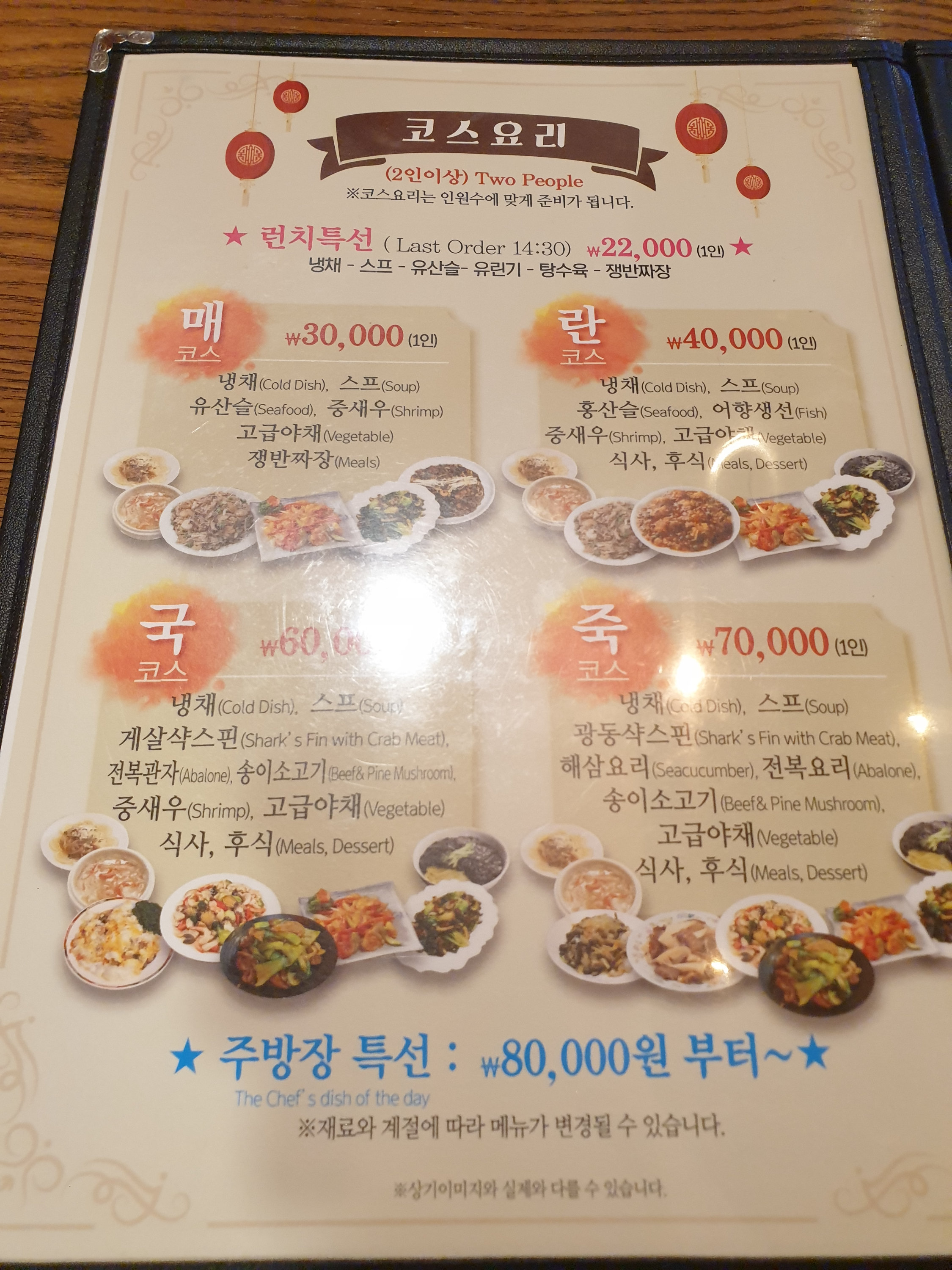 점심특선부터 코스요리까지 다양한 메뉴가 있는데