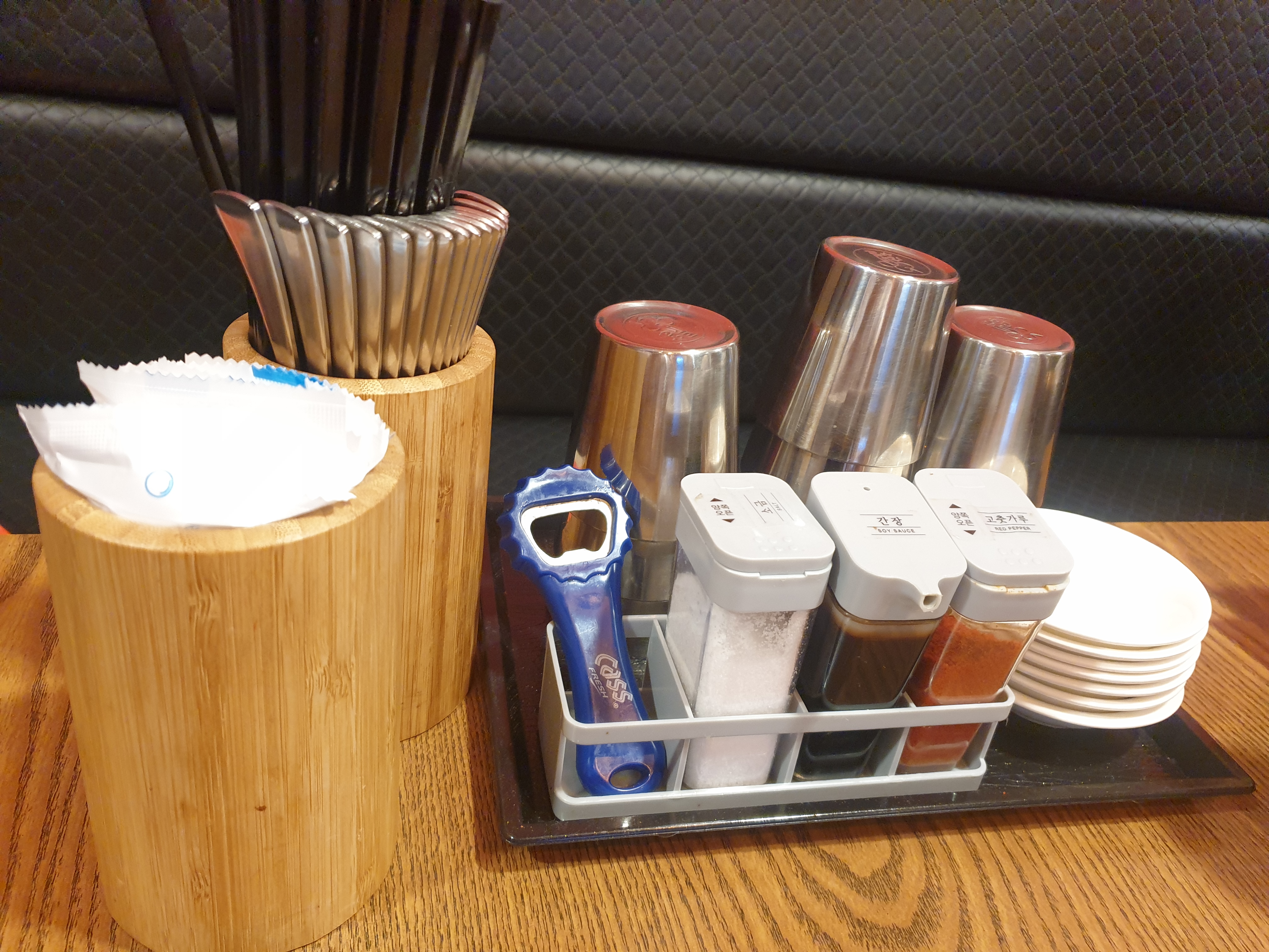 한쪽에는 소금과 간장, 고춧가루가 세팅되어 있구요