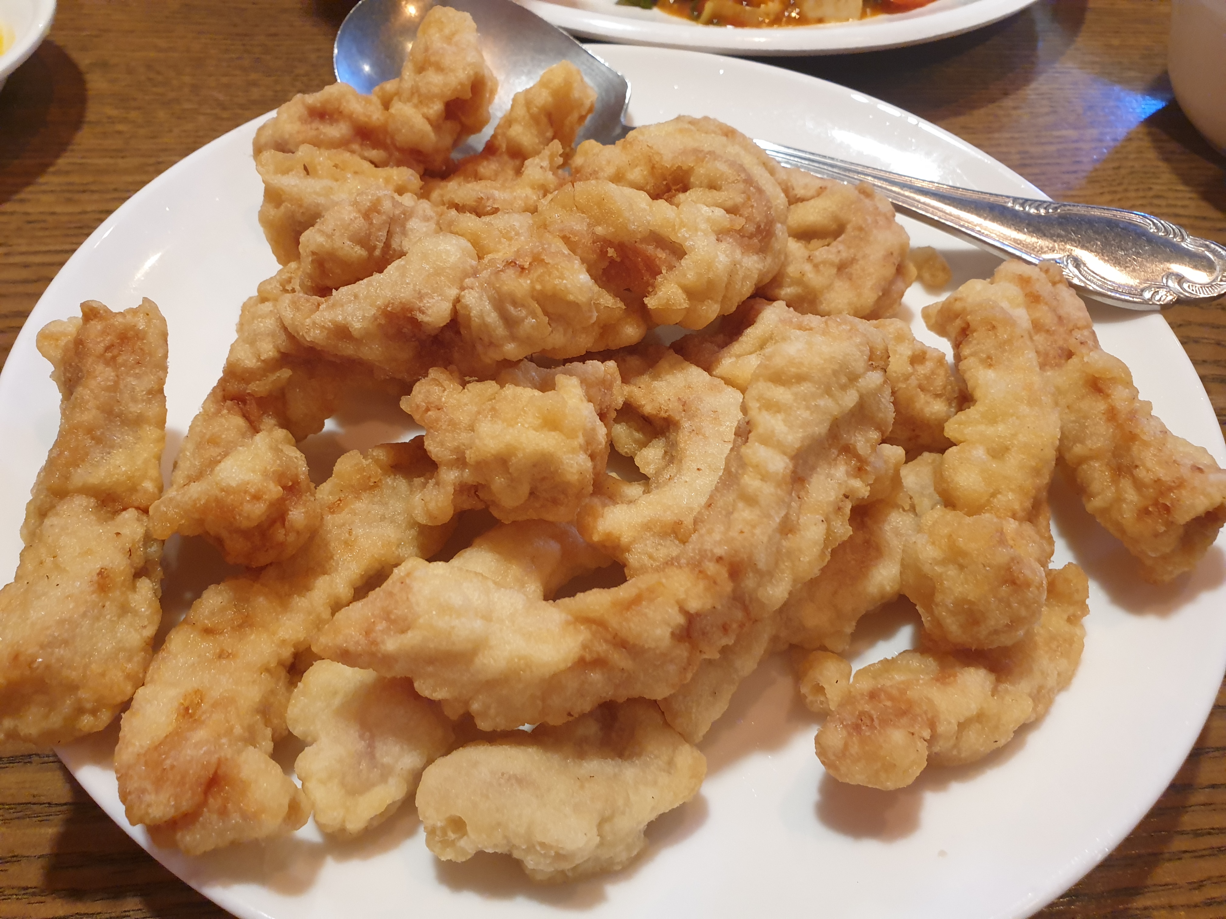 맛있게 음식을 먹고 있는데 후식이라며 두고 간 튀김