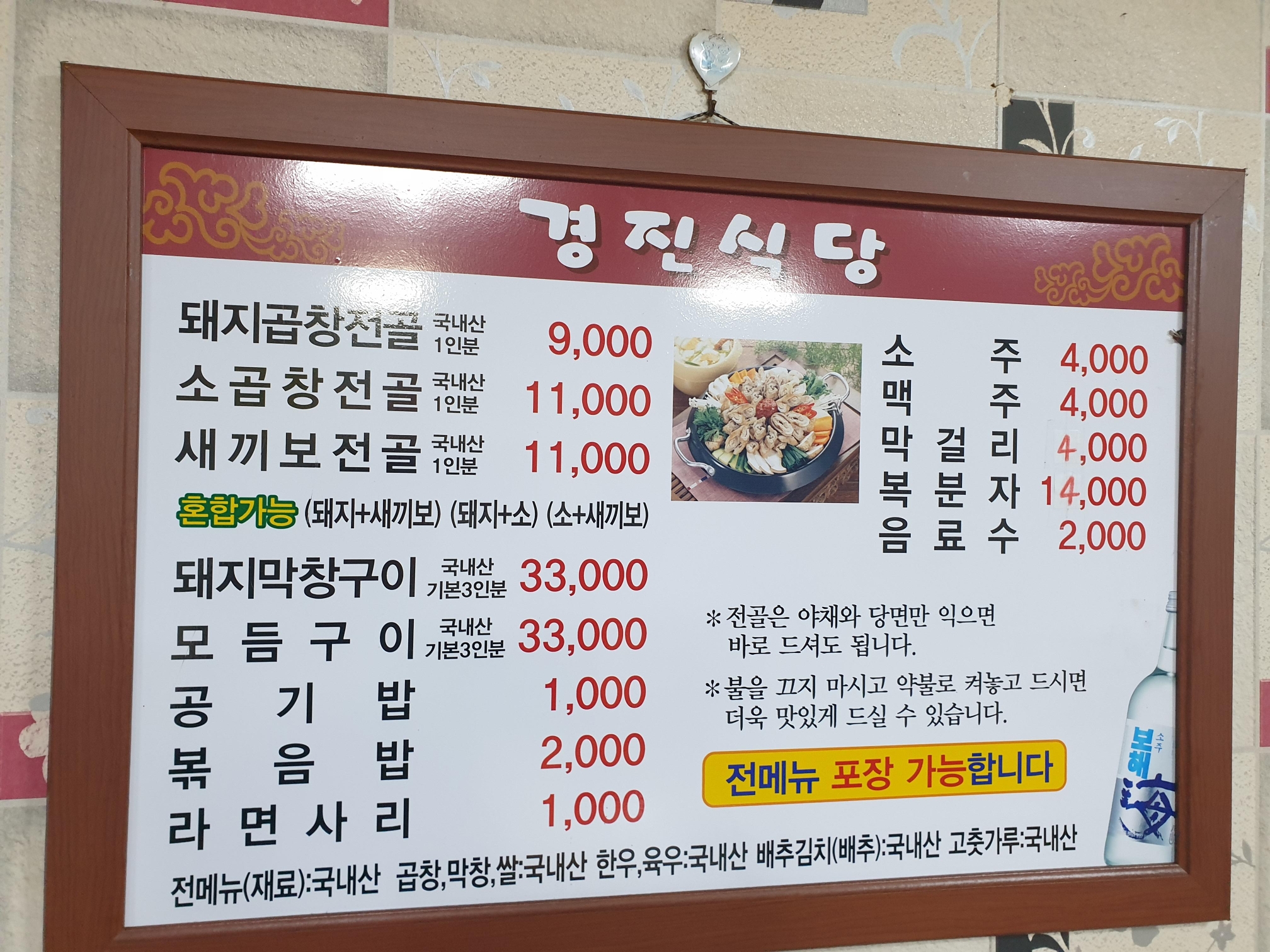 경진식당의 곱창전골은 칼칼한 국물부터 좋구요