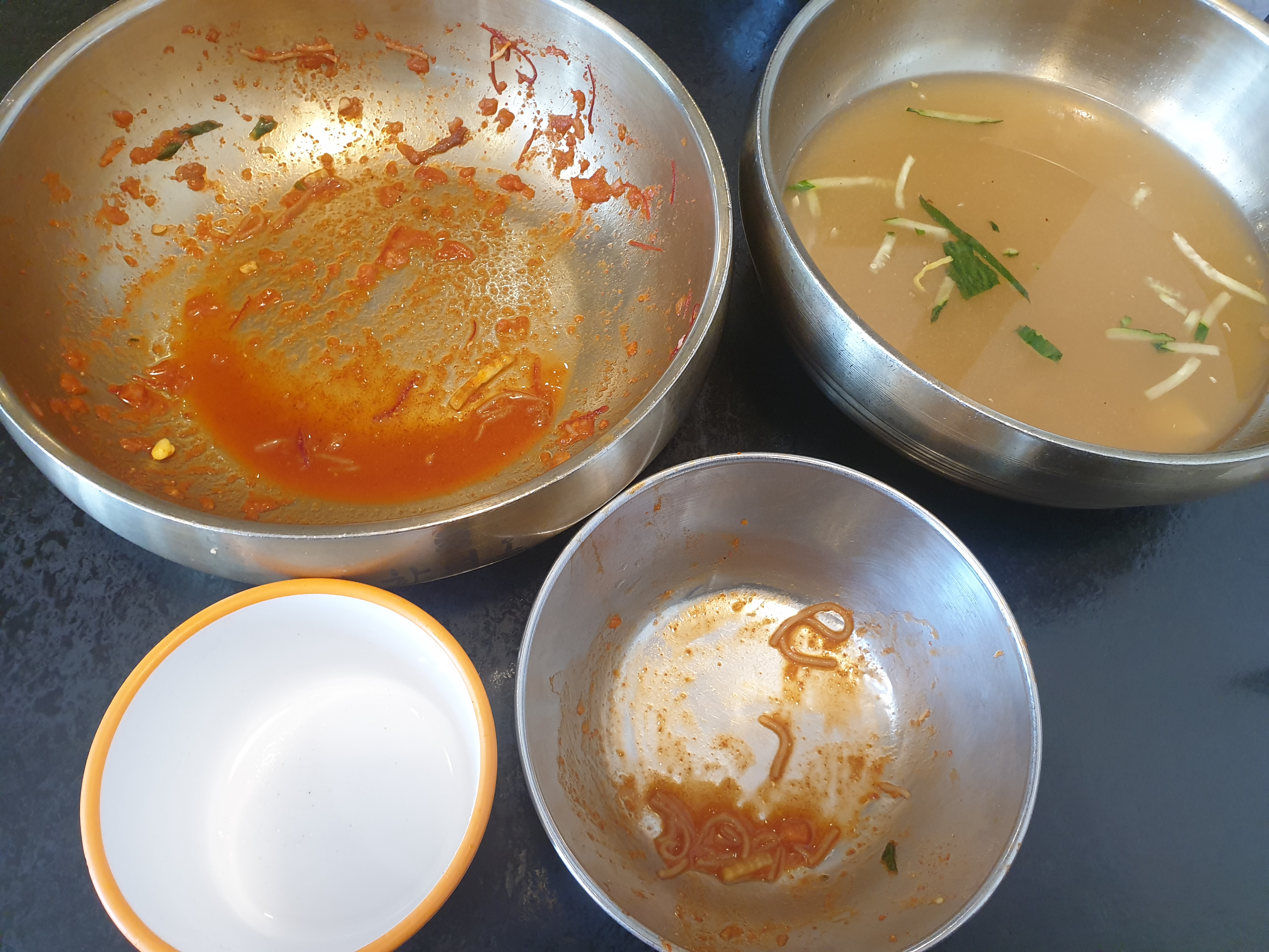 비빔냉면은 바닥이 보이도록 다 먹었구요