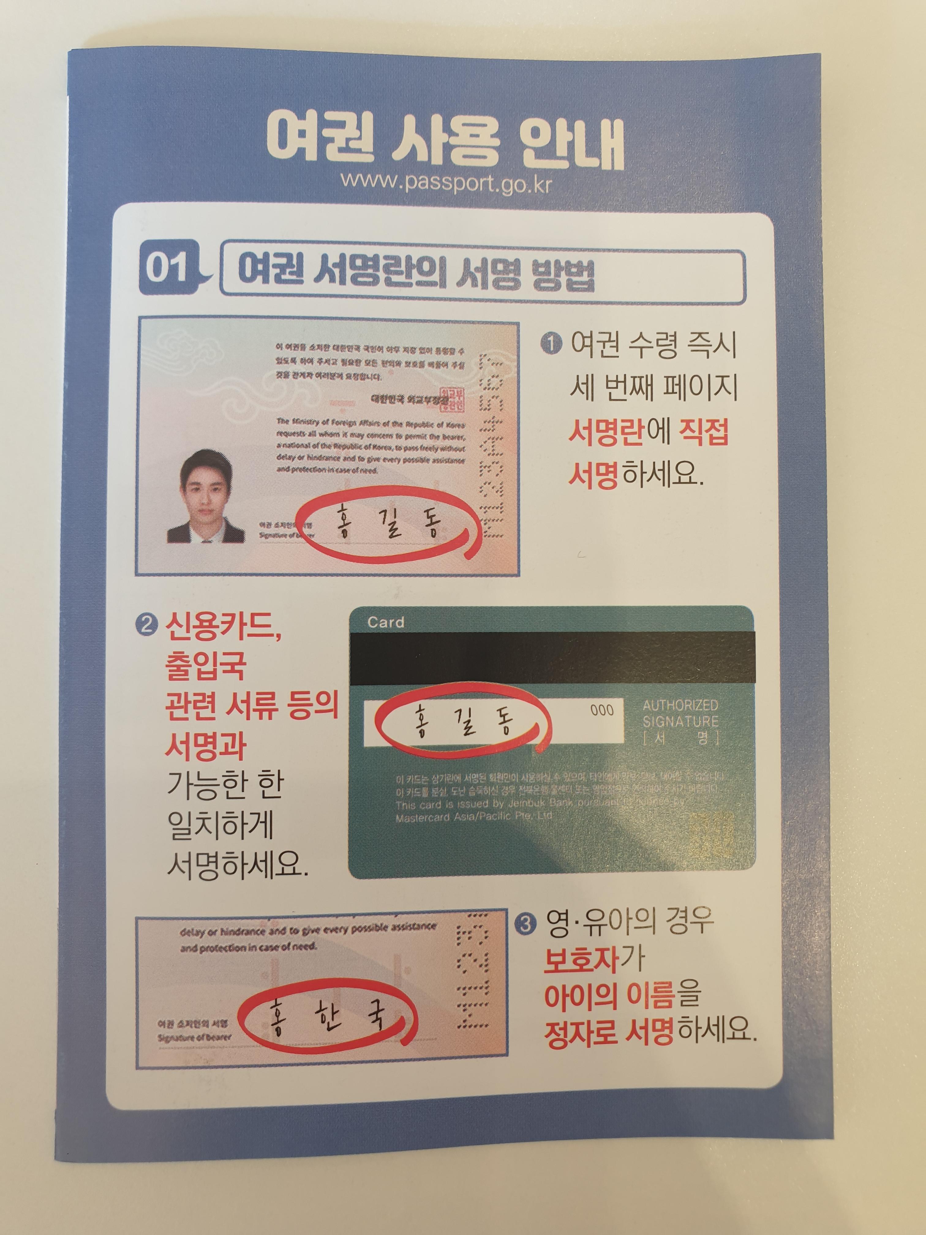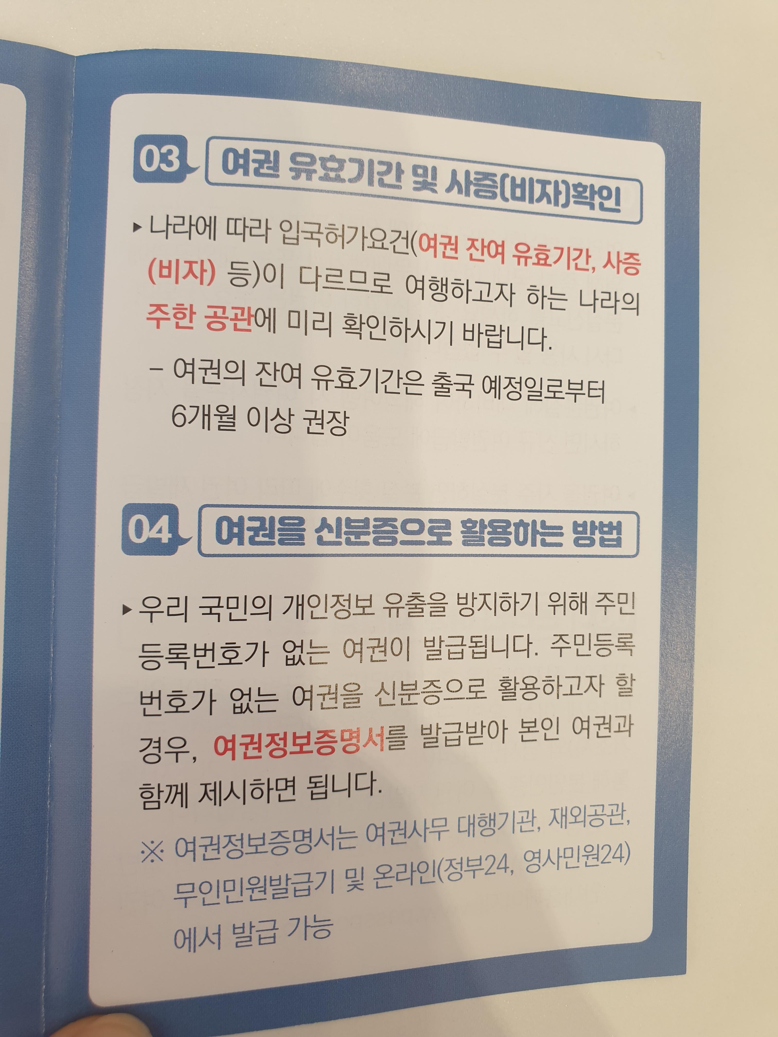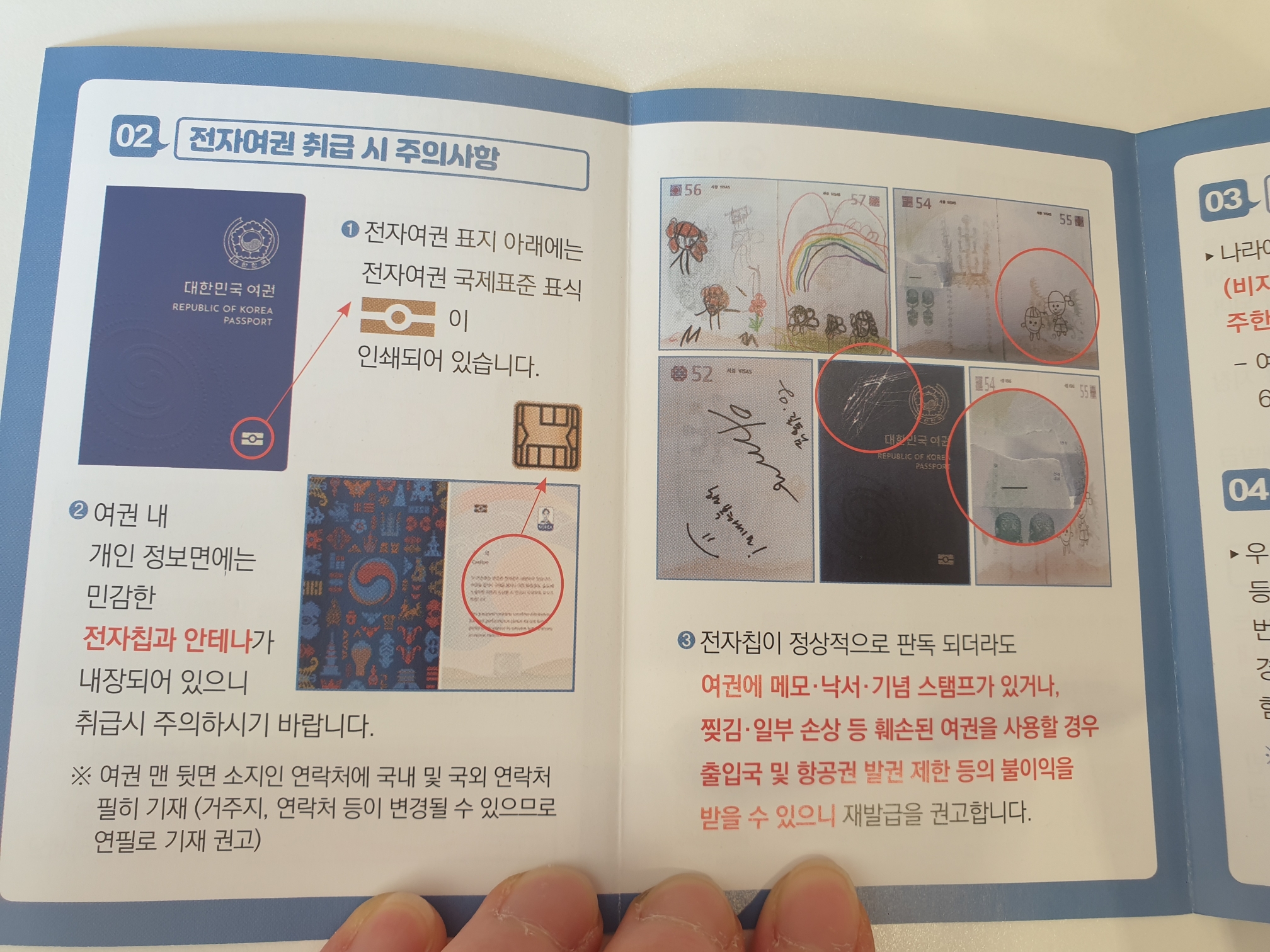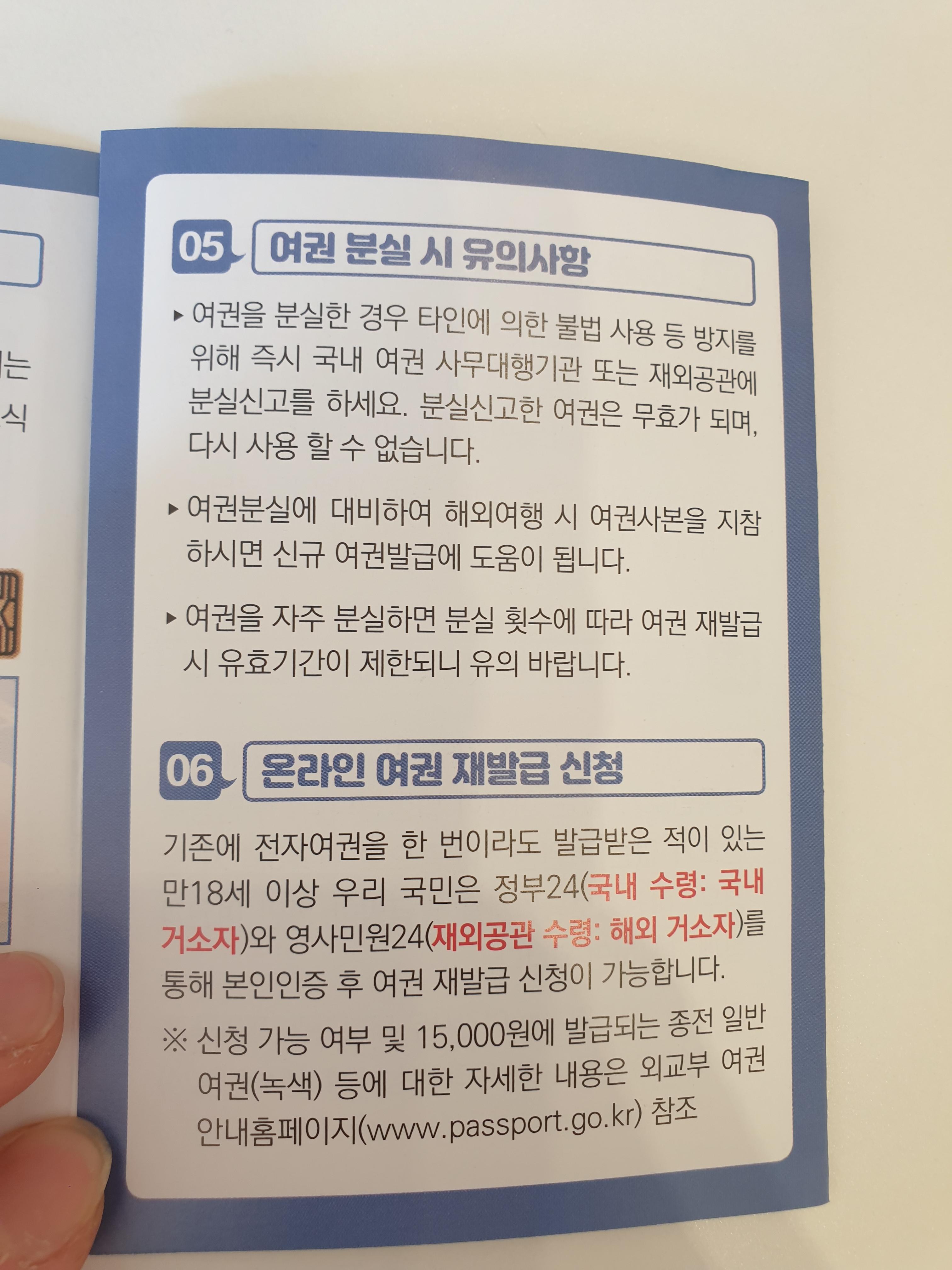 여권을 재발급받았을 때 받은 팜플렛입니다