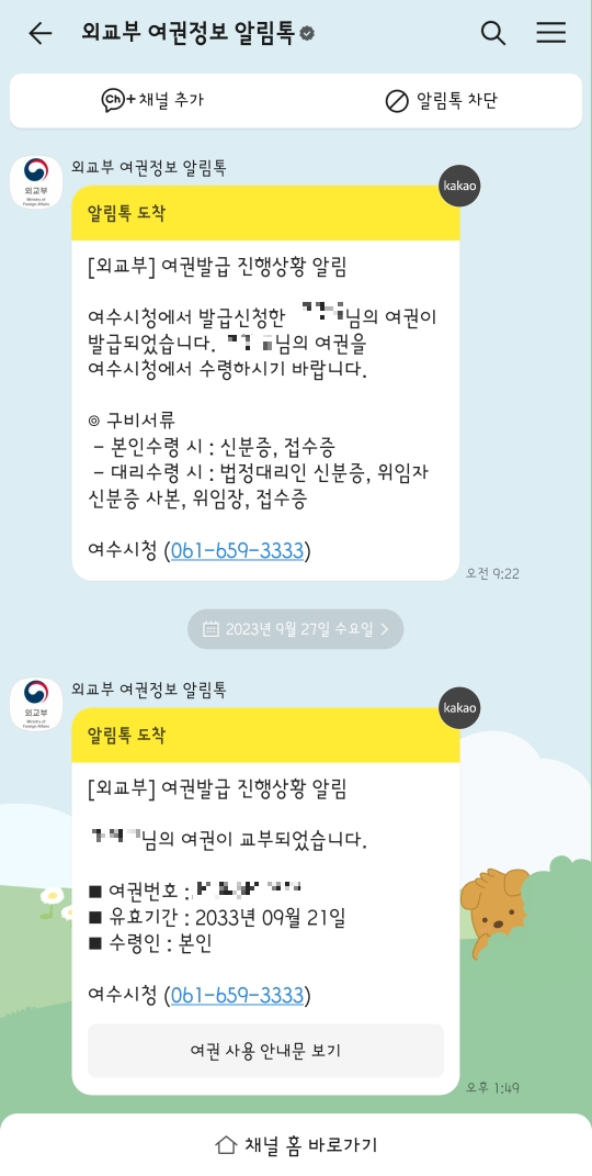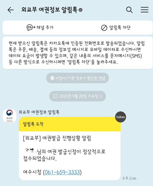 외교부 여권정보 알림톡으로 진행상황을 알려줘요