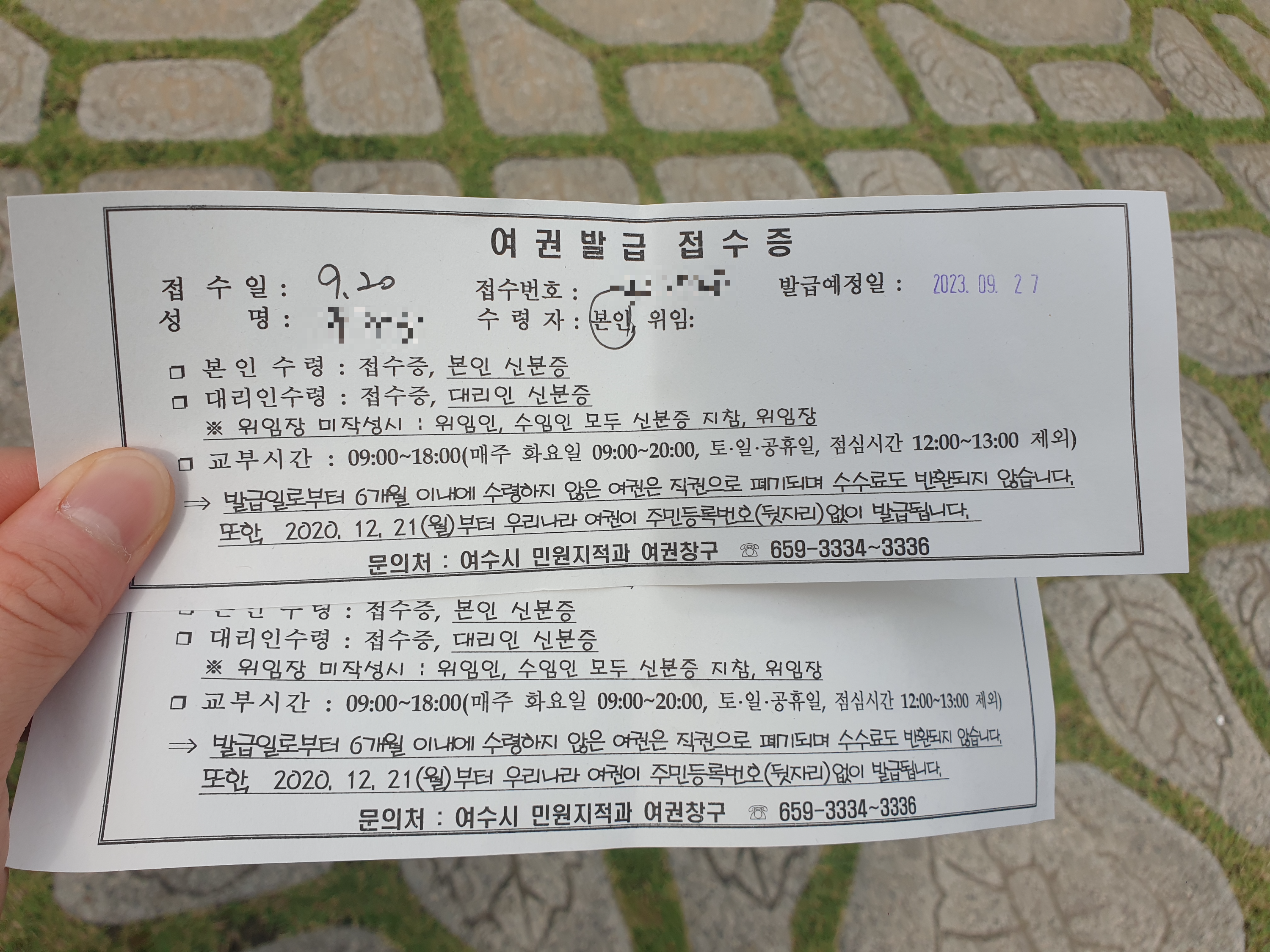 여권발급 접수증입니다 이거 꼭 잘 챙기셔요