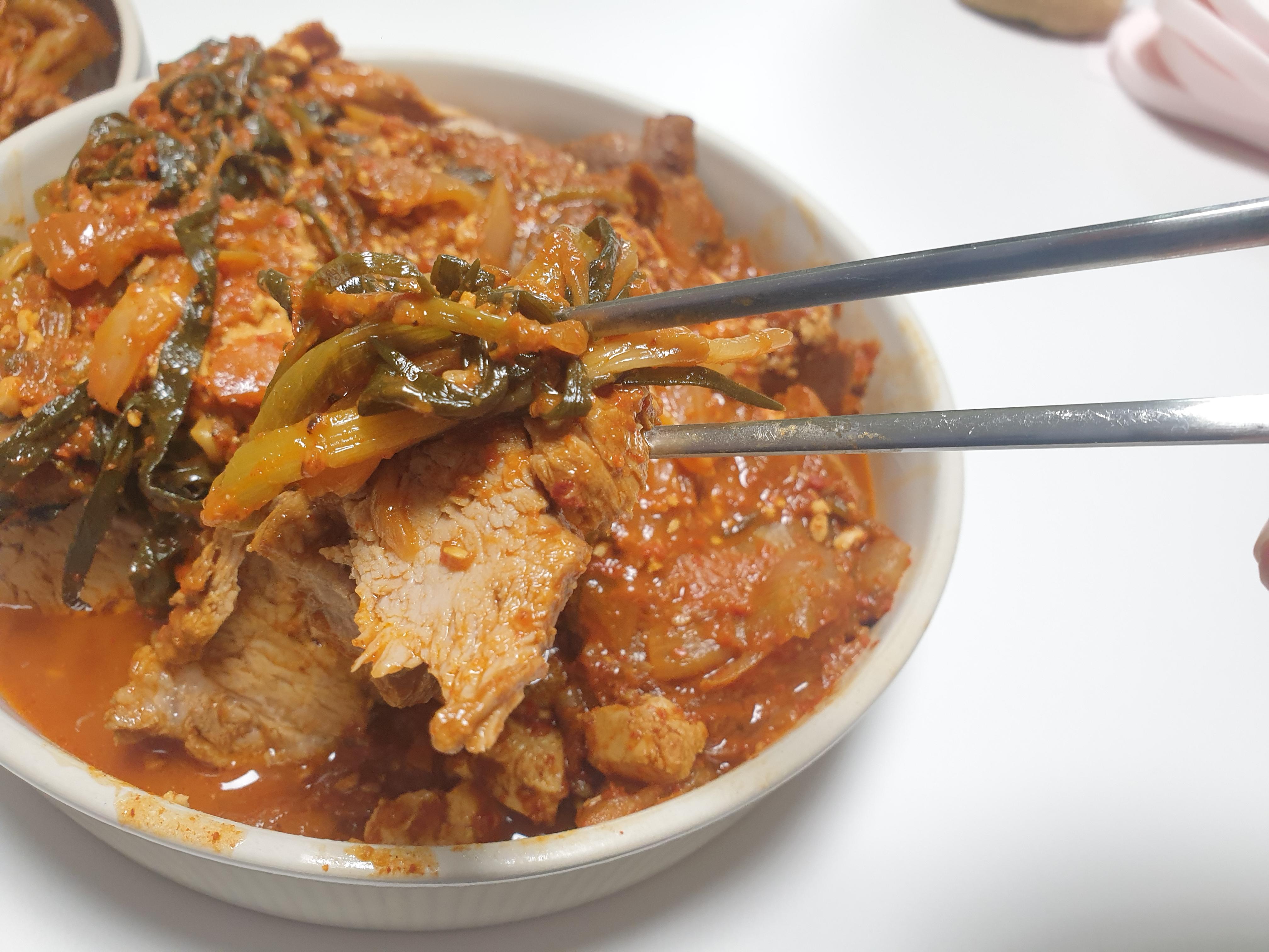 통목살이 세일해서 통목살 김치찜을 했습니다