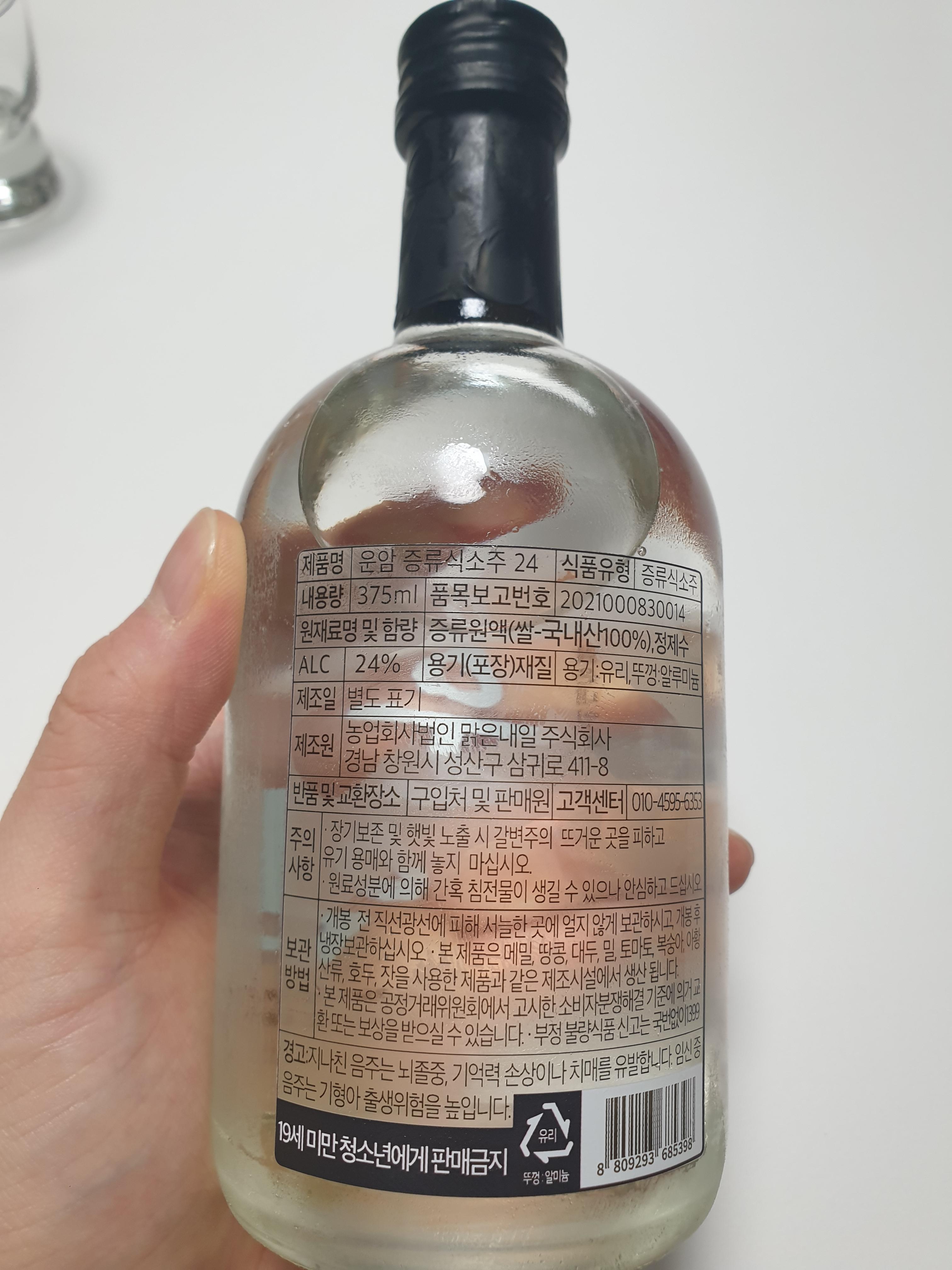 운암 24% 맑은 내일 증류식 소주입니다