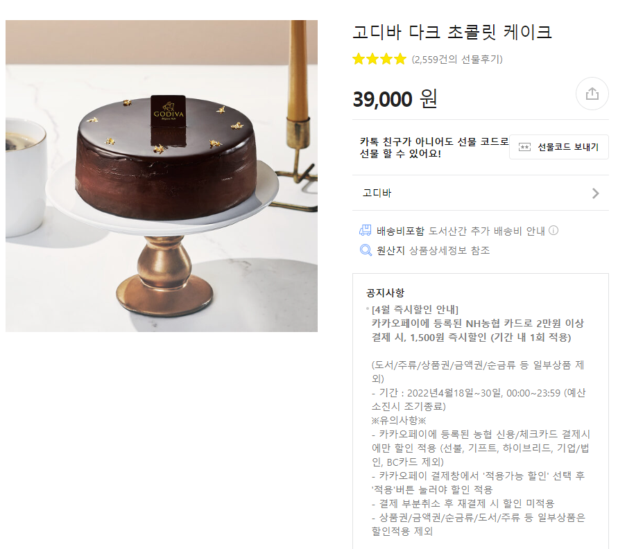 찾아보니 카카오톡 선물하기에서 판매 중!