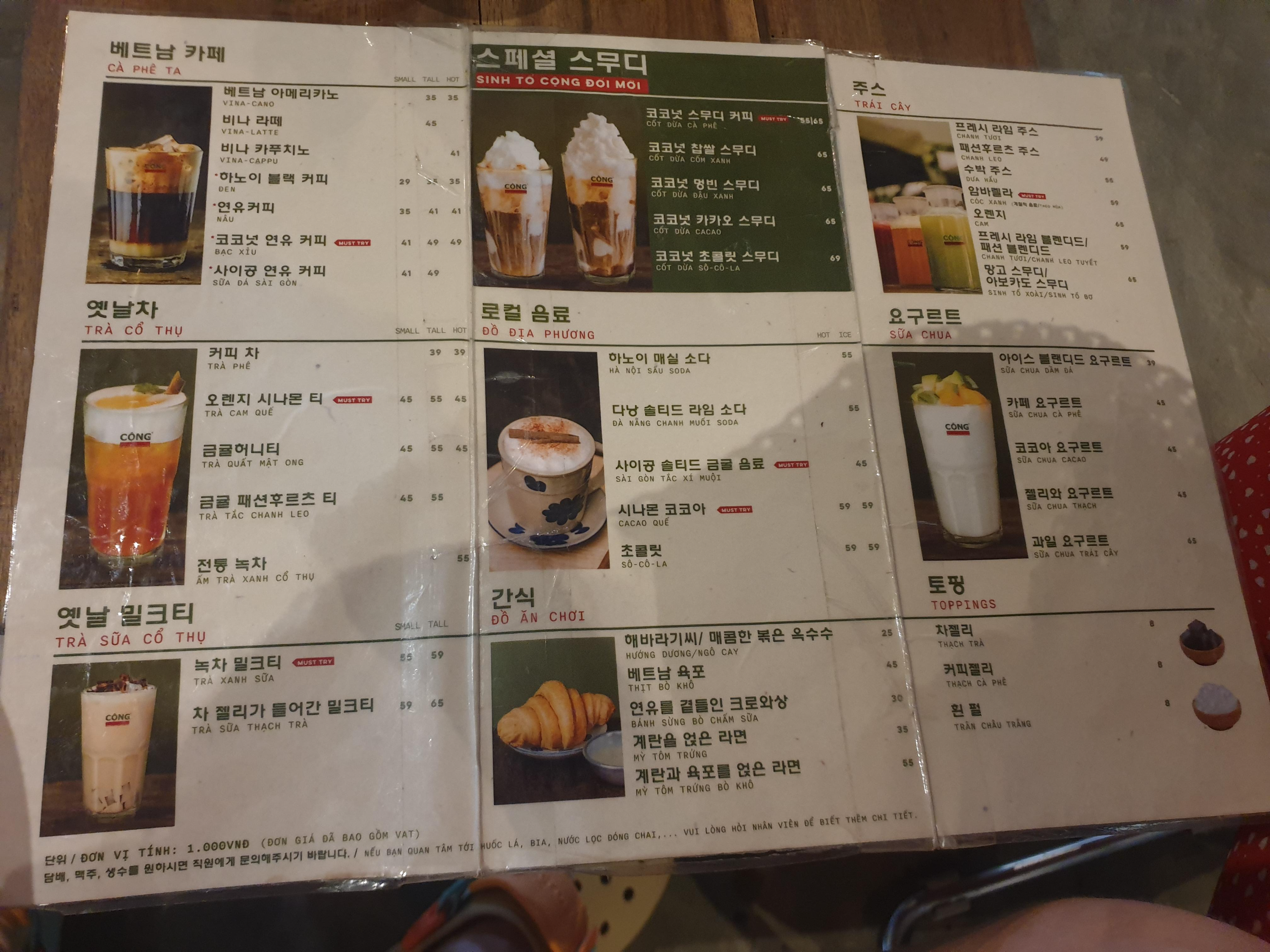 콩카페(CONG CA PHE) 메뉴판