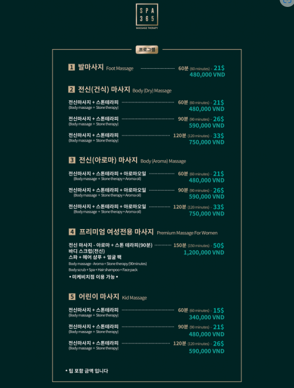 스파 365의 가격입니다