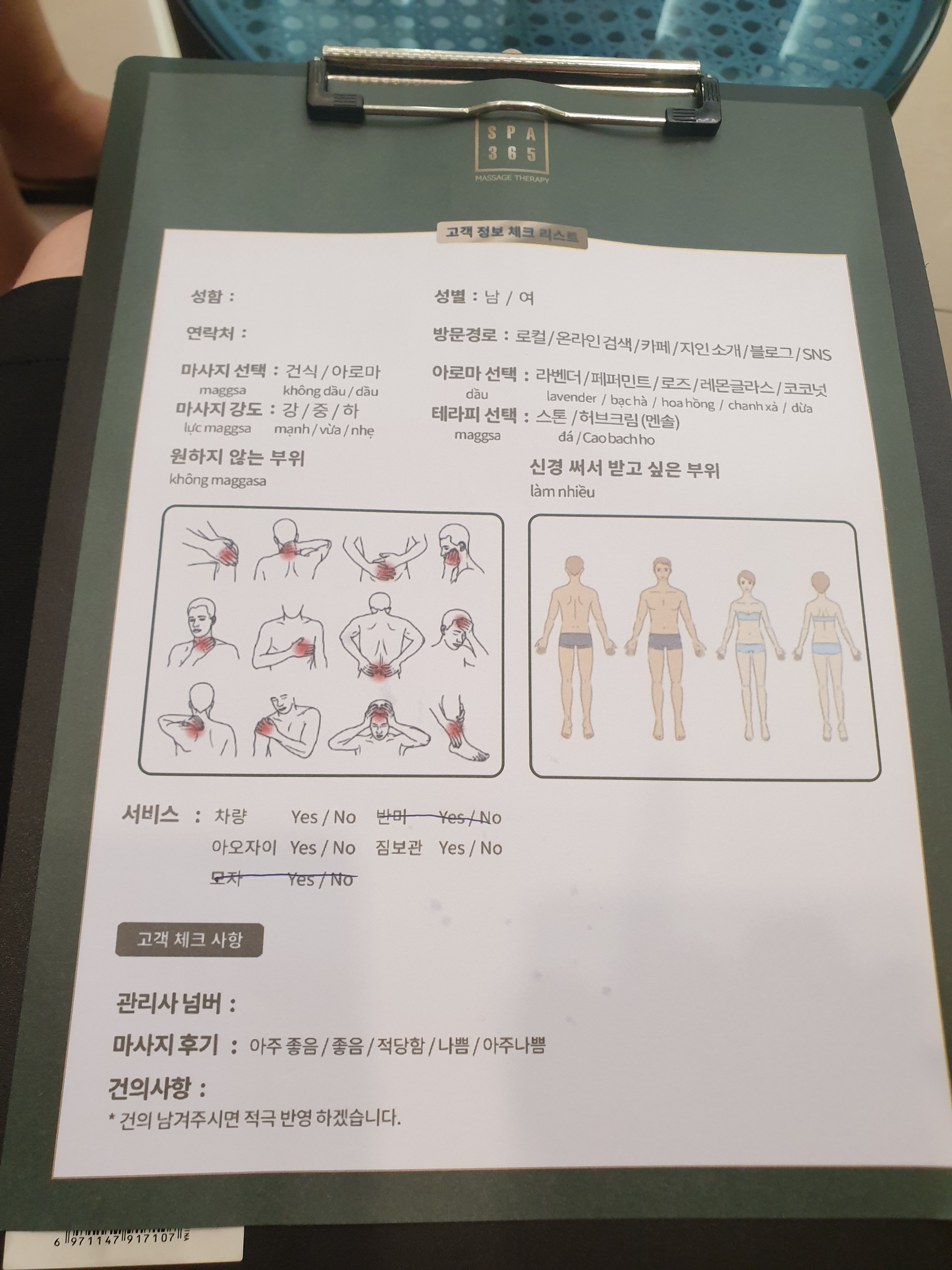 마지막으로 마사지가 어땠는지 작성하고 나면