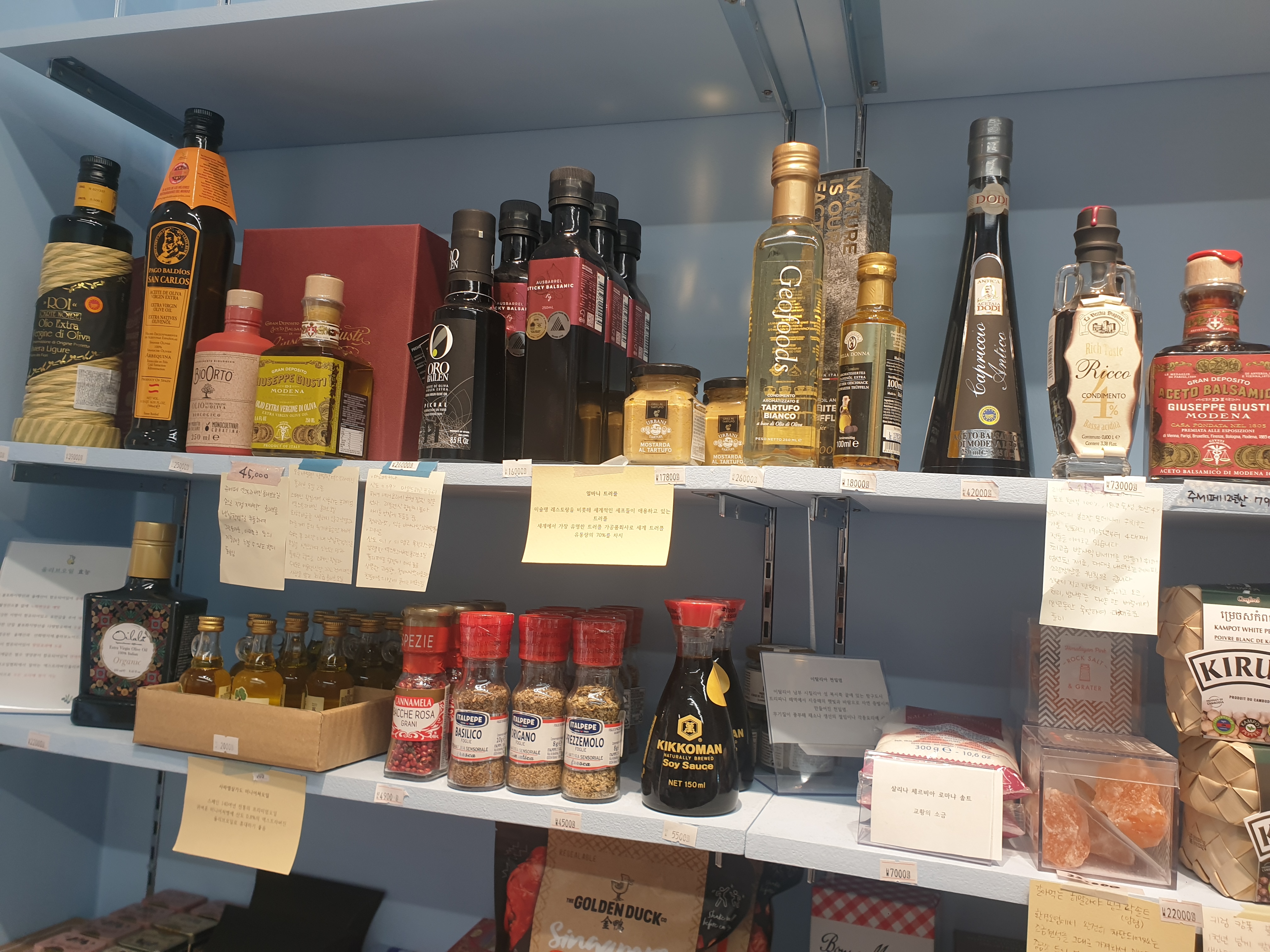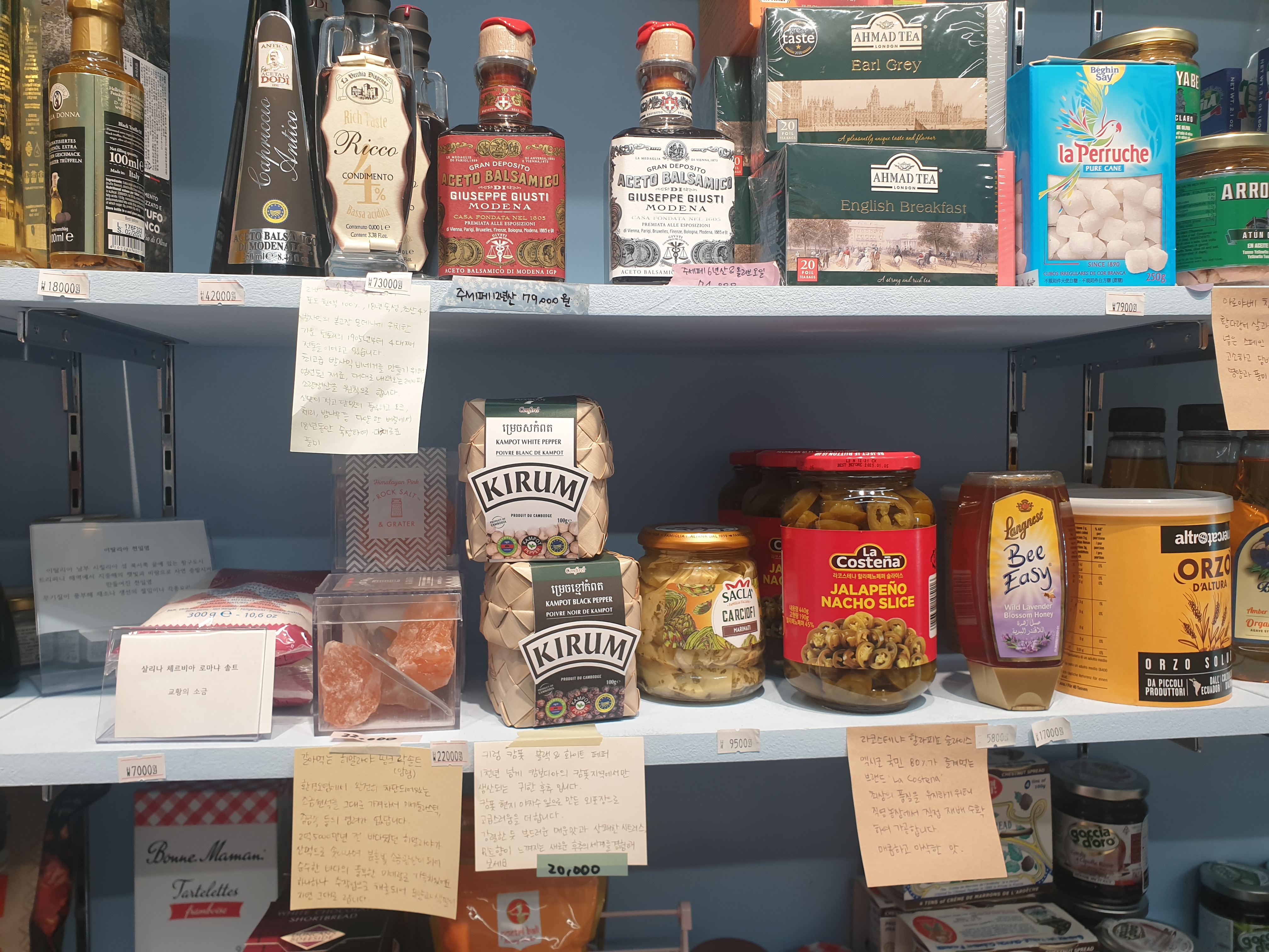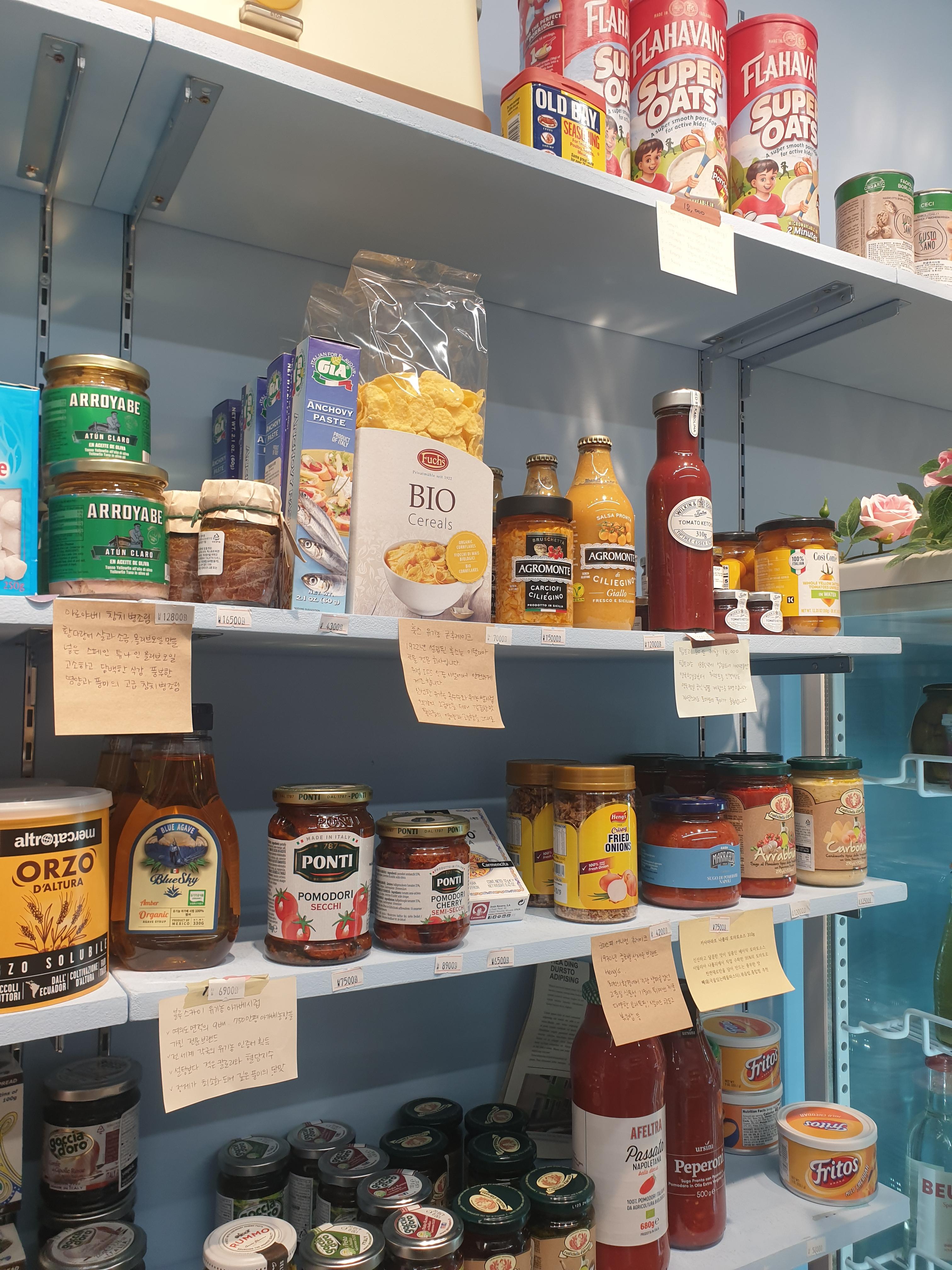 여러 나라의 식재료들의 비치되어 있는데요