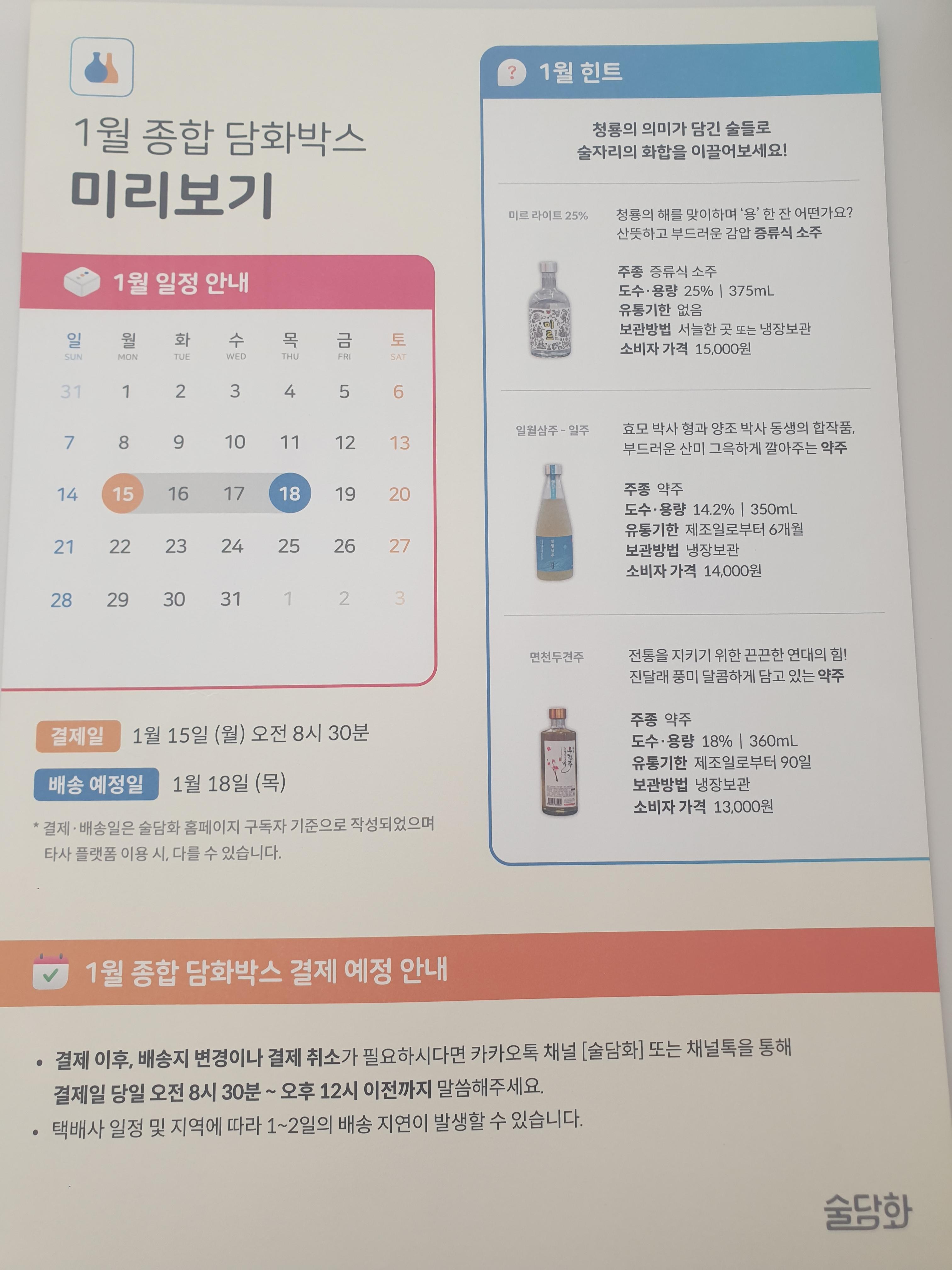 1월의 술도 같이 소개가 되었는데요