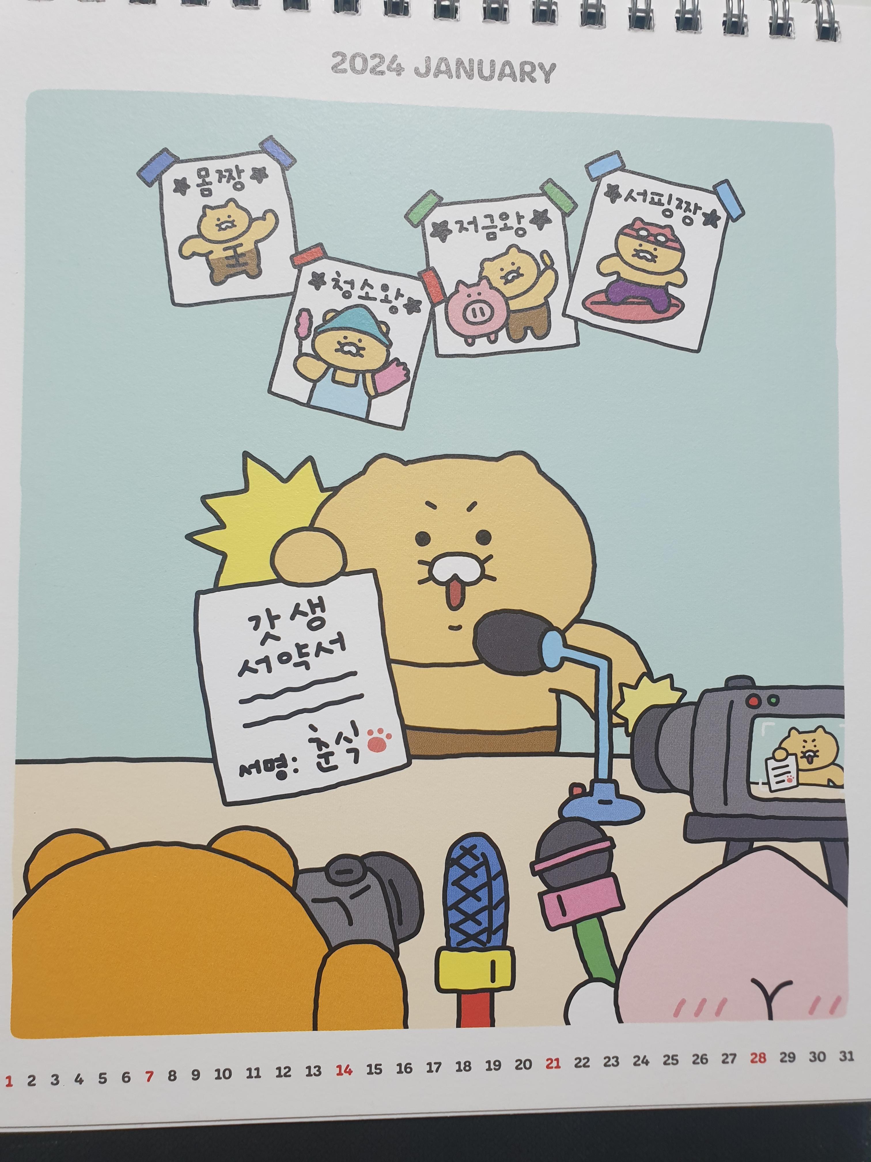 달마다 카카오 캐릭터들로 그림이 표시되어 있는데