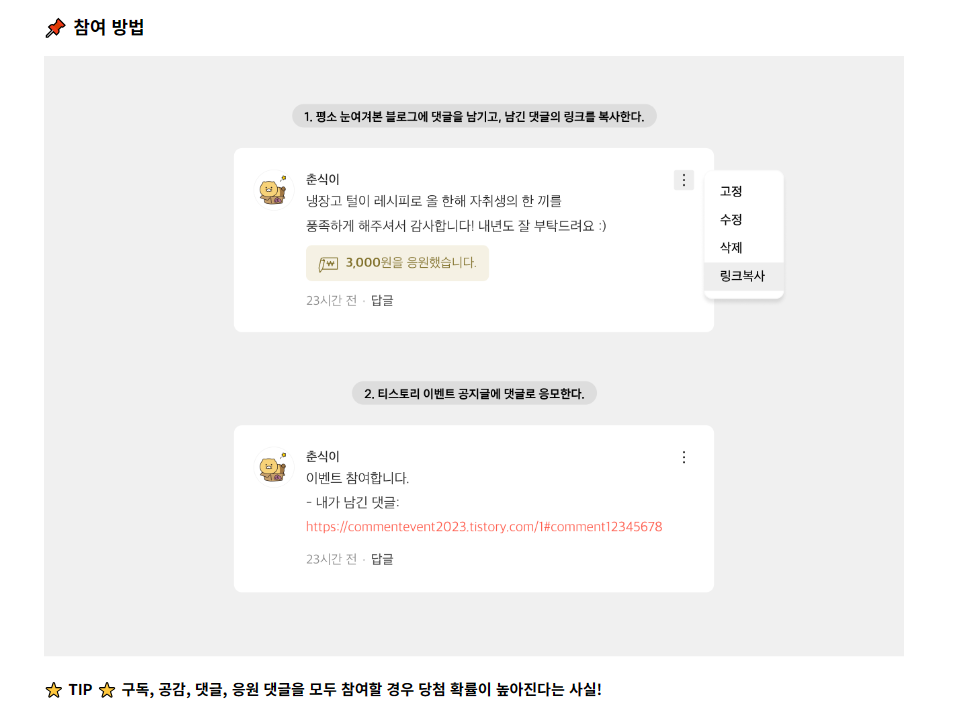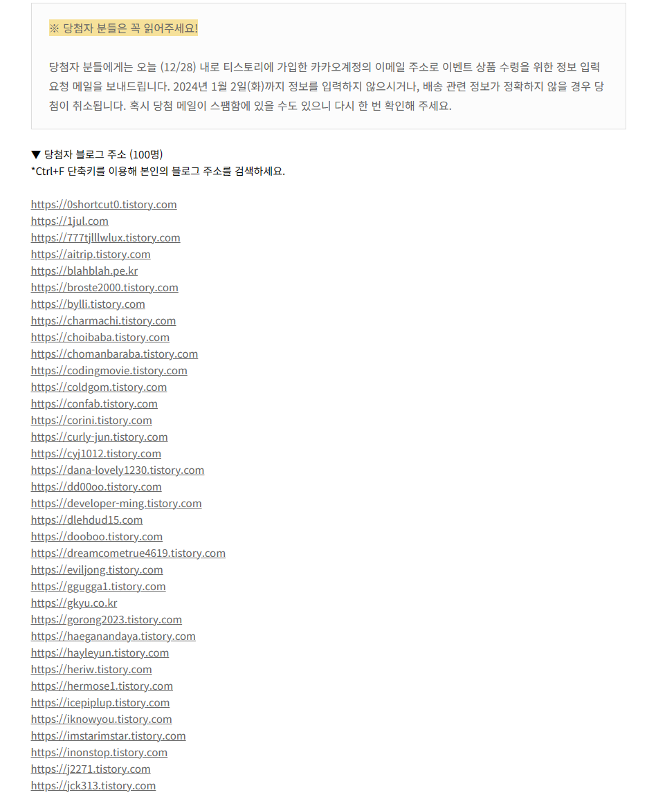 티스토리 댓글 이벤트와 당첨