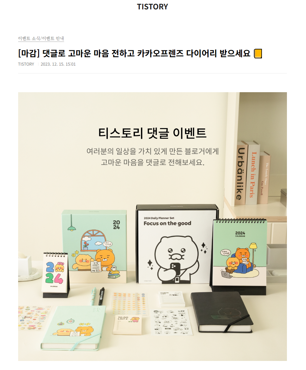 2024 카카오 다이어리 세트 당첨 후기 끝!
