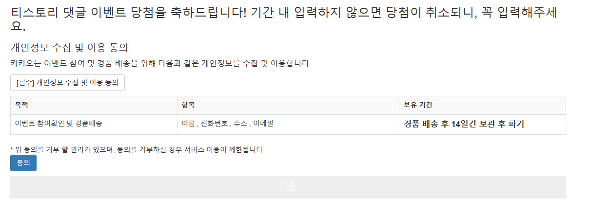티스토리에서 댓글 이벤트를 했었거든요