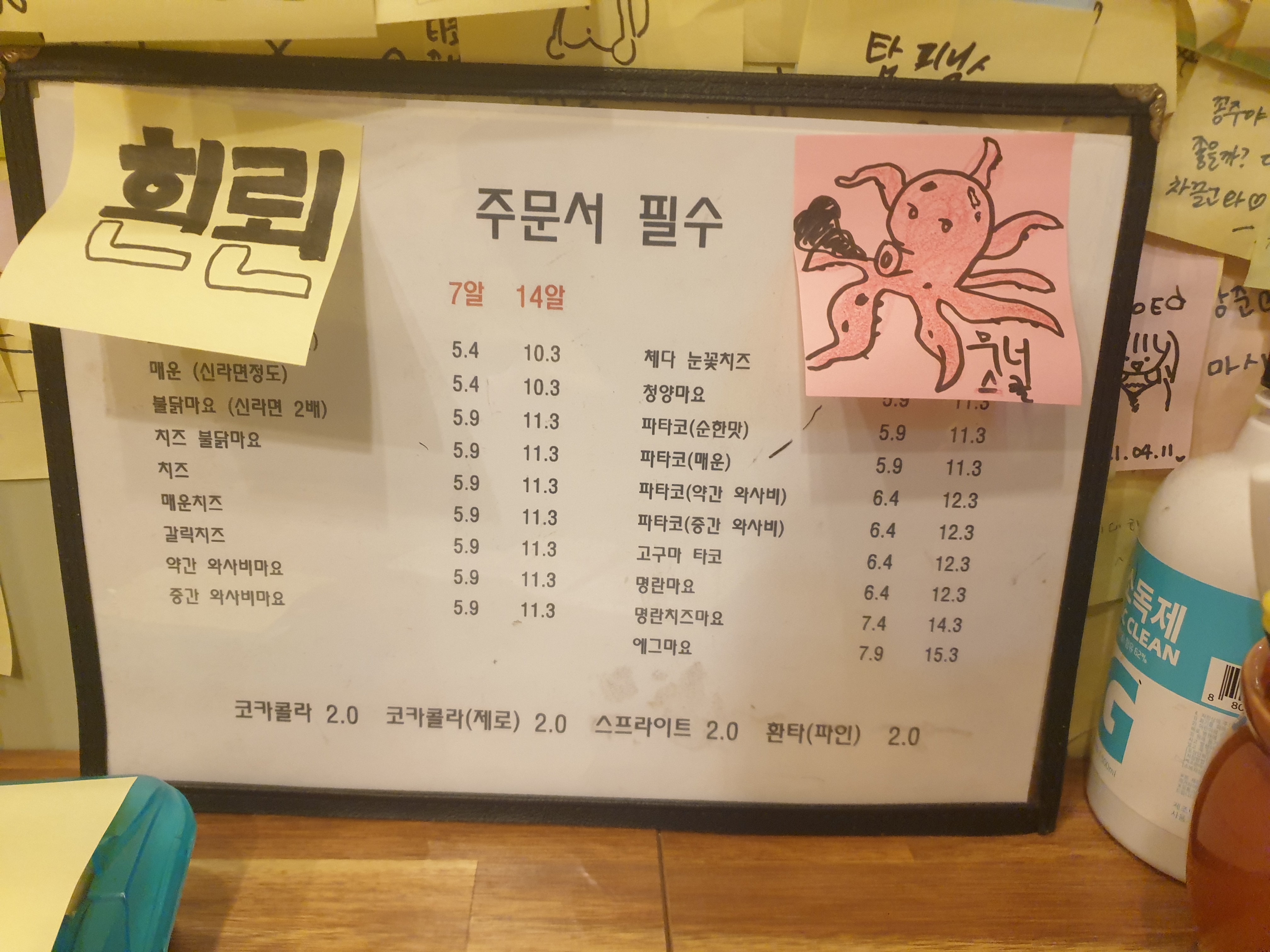 타코즐 메뉴판