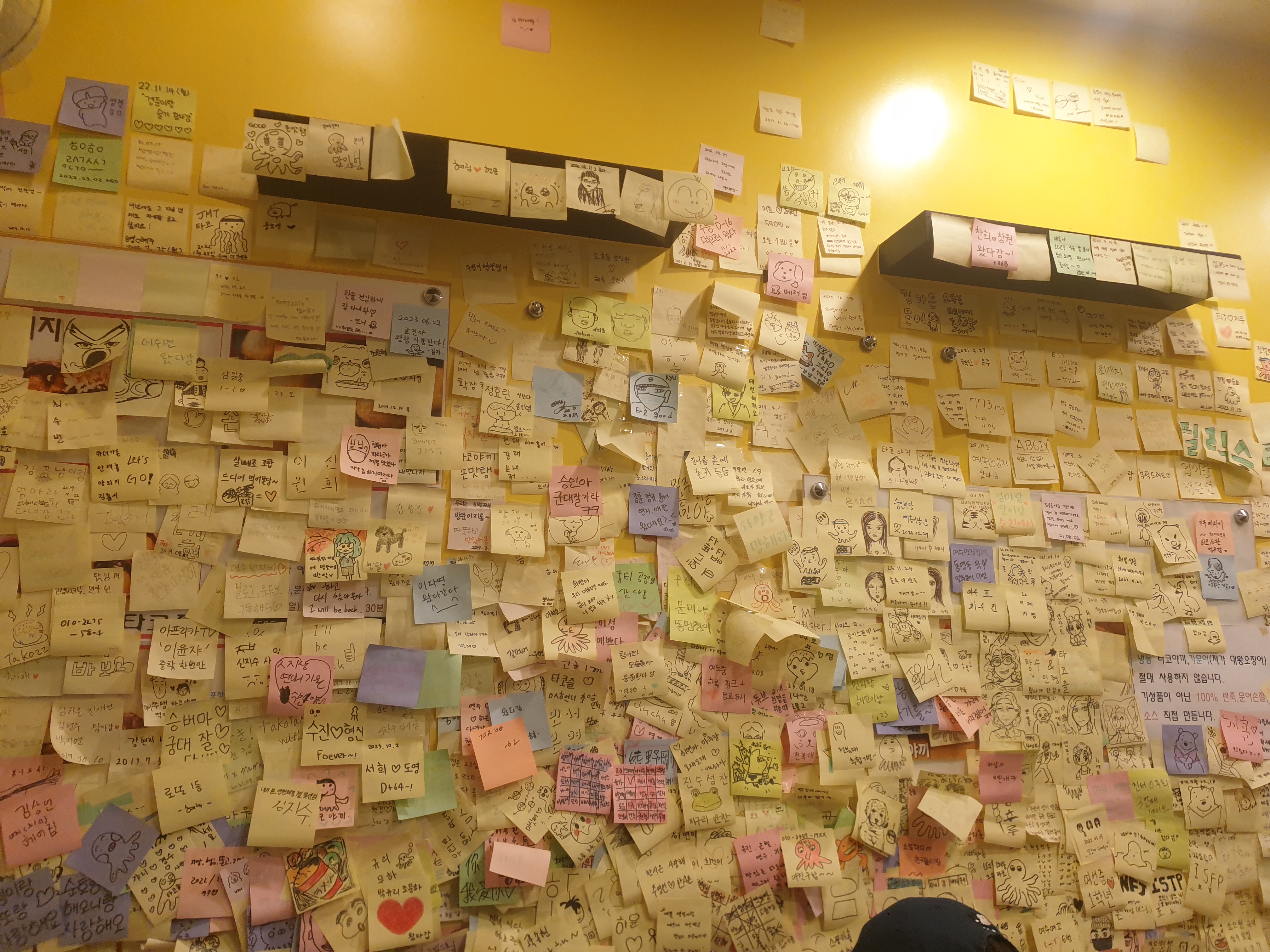 벽에 가득 붙어있는 다양한 포스트잇을 보니