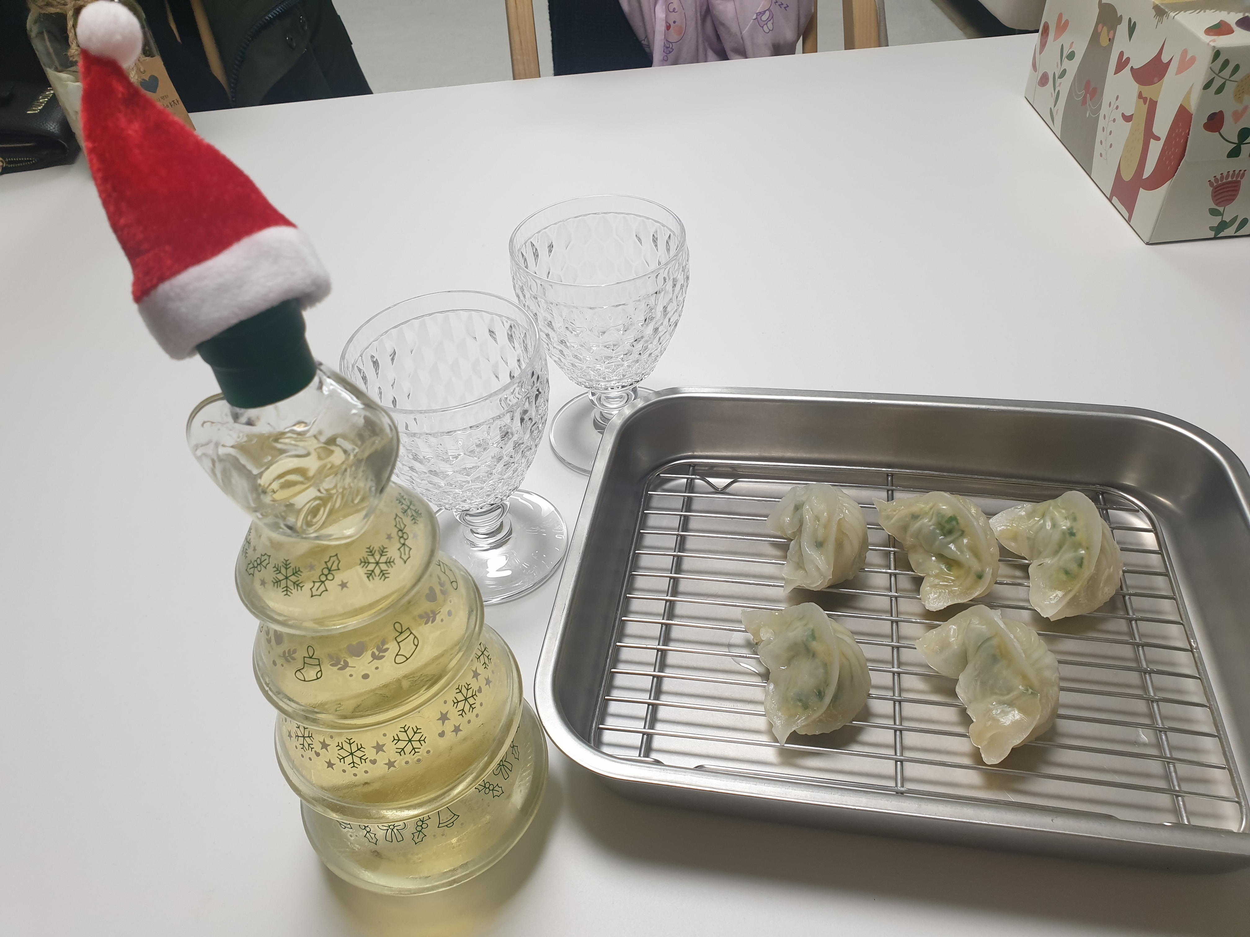 술만 먹을 수는 없으니 새우만두도 준비했어요