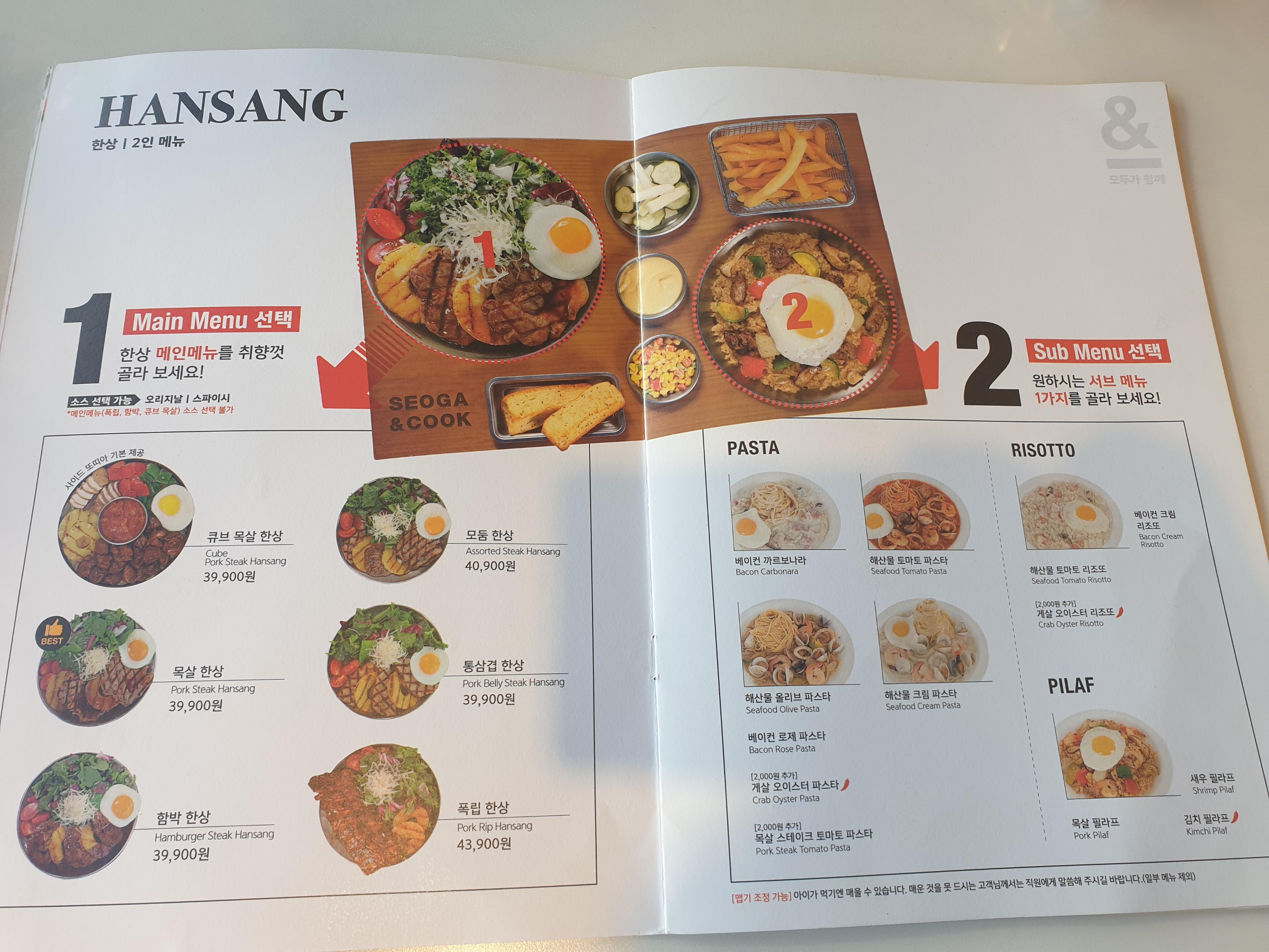 서가앤쿡 메뉴판