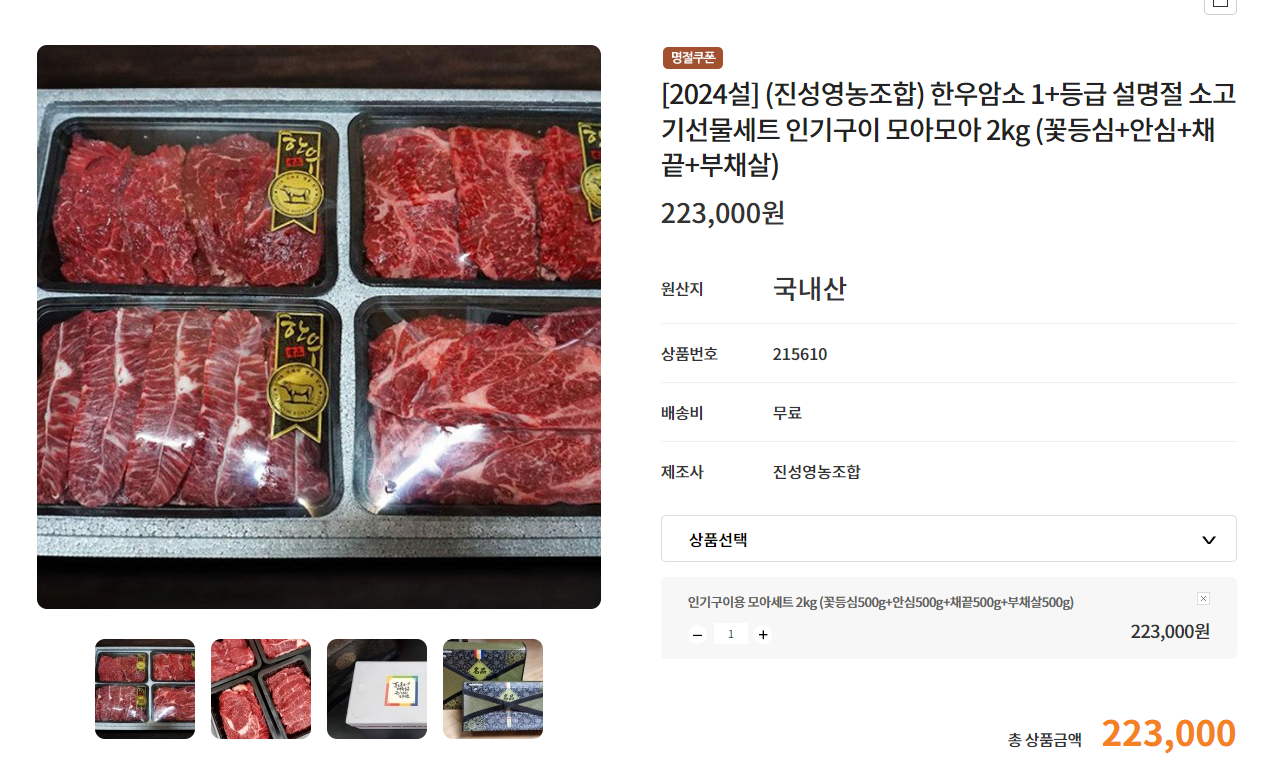 설 명절을 맞아 소고기 세트를 선물로 보내드렸습니다