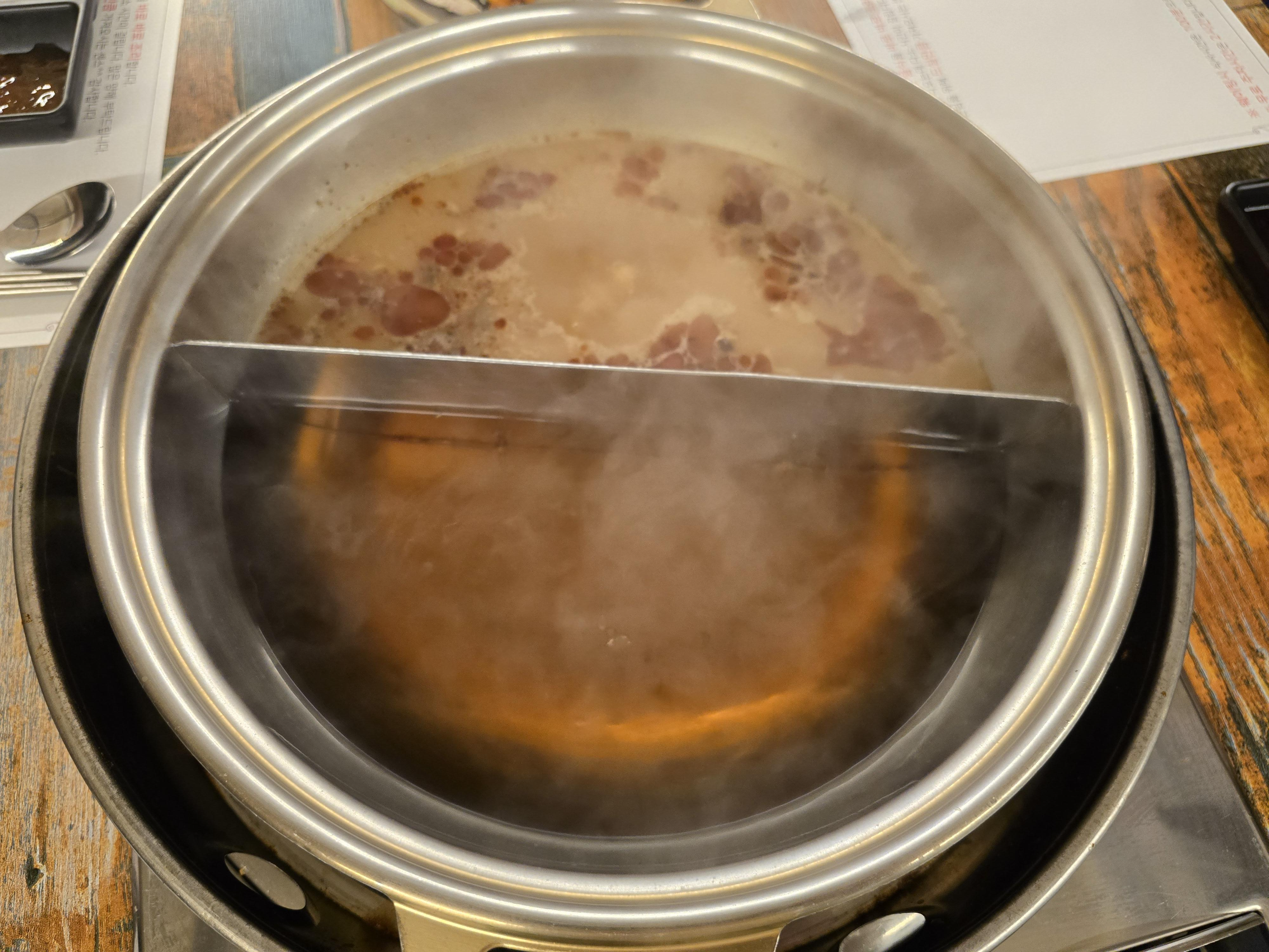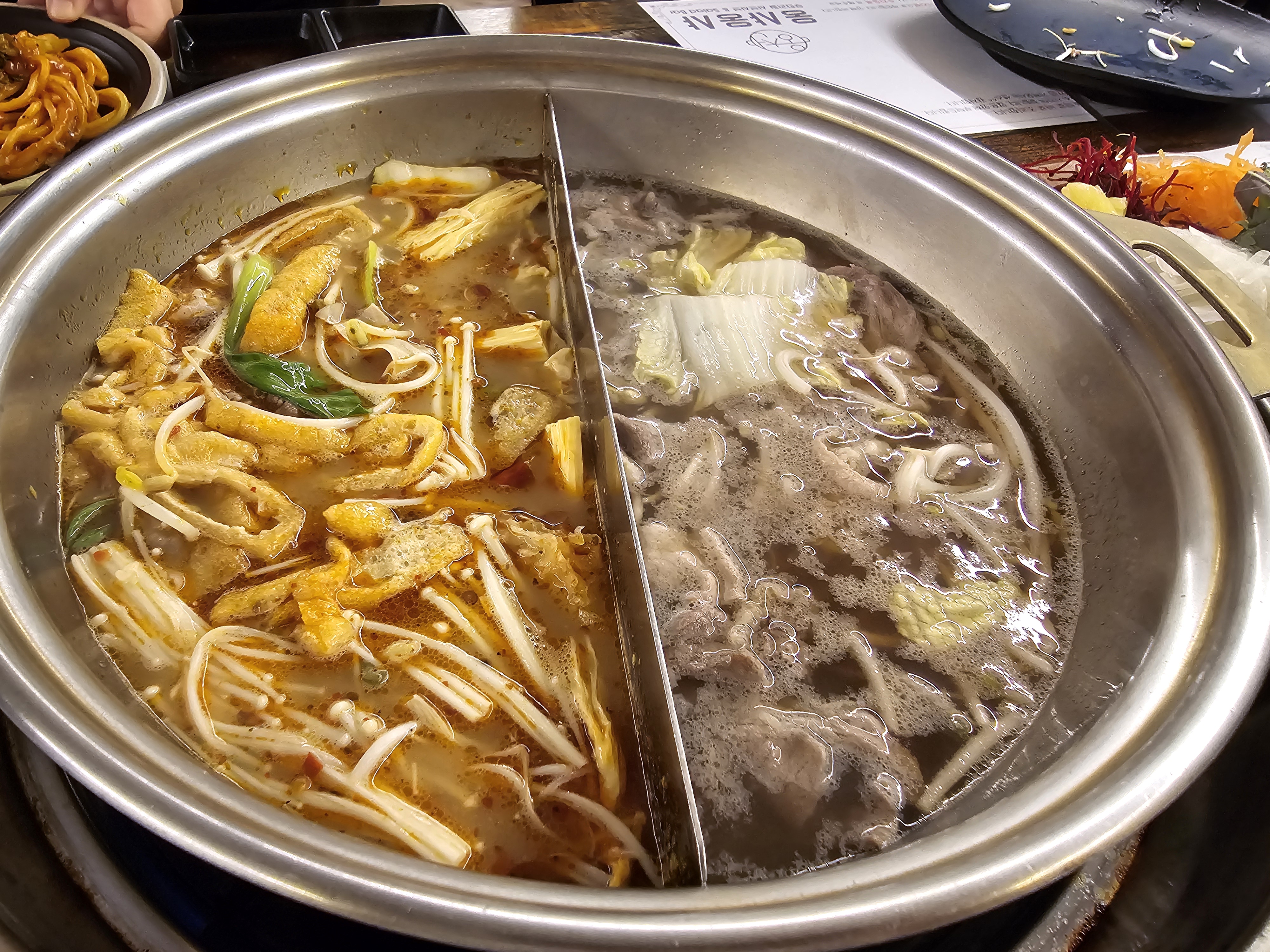 한쪽은 마라육수 한쪽은 순한육수입니다