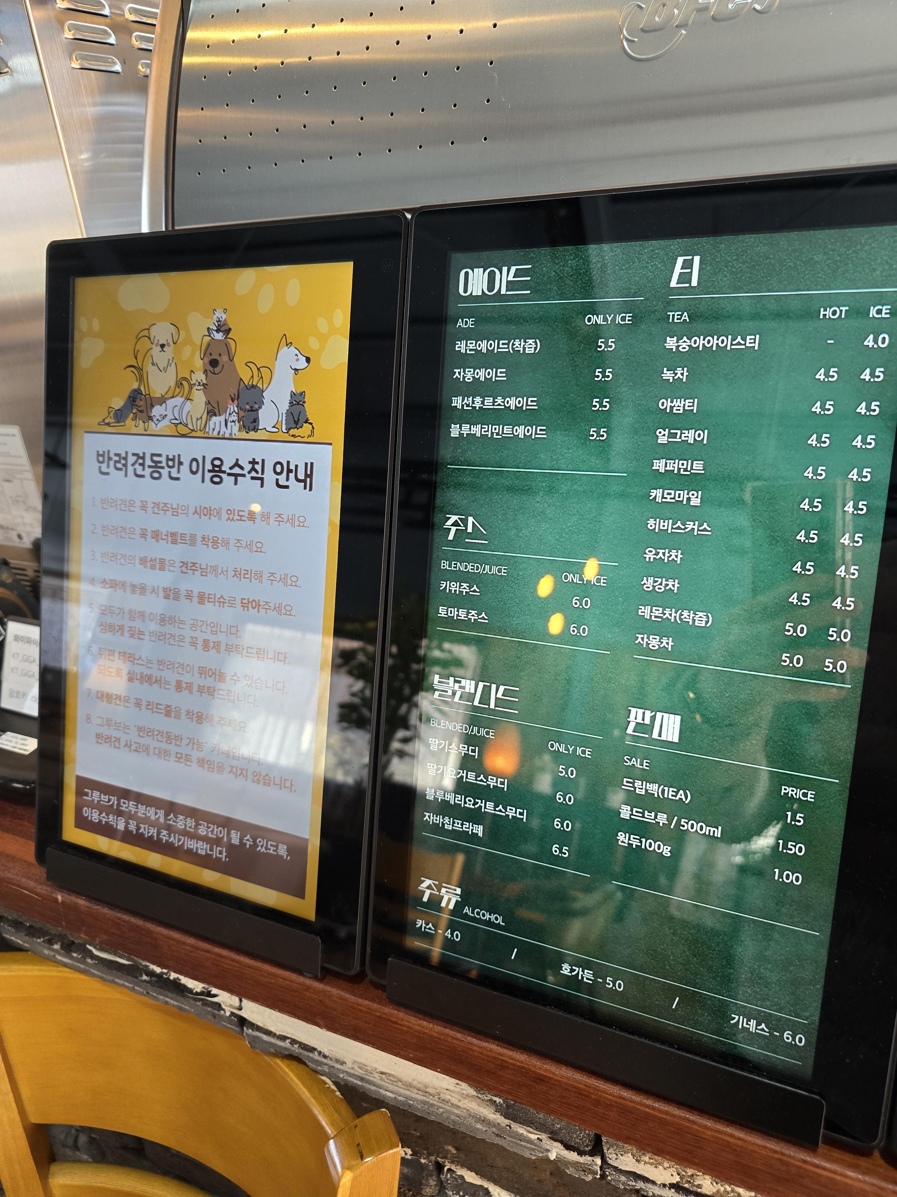바로 앞에서 하얀 멍뭉이 태리가 영업을 하고 있는 분위기와 커피 맛이 좋은 카페