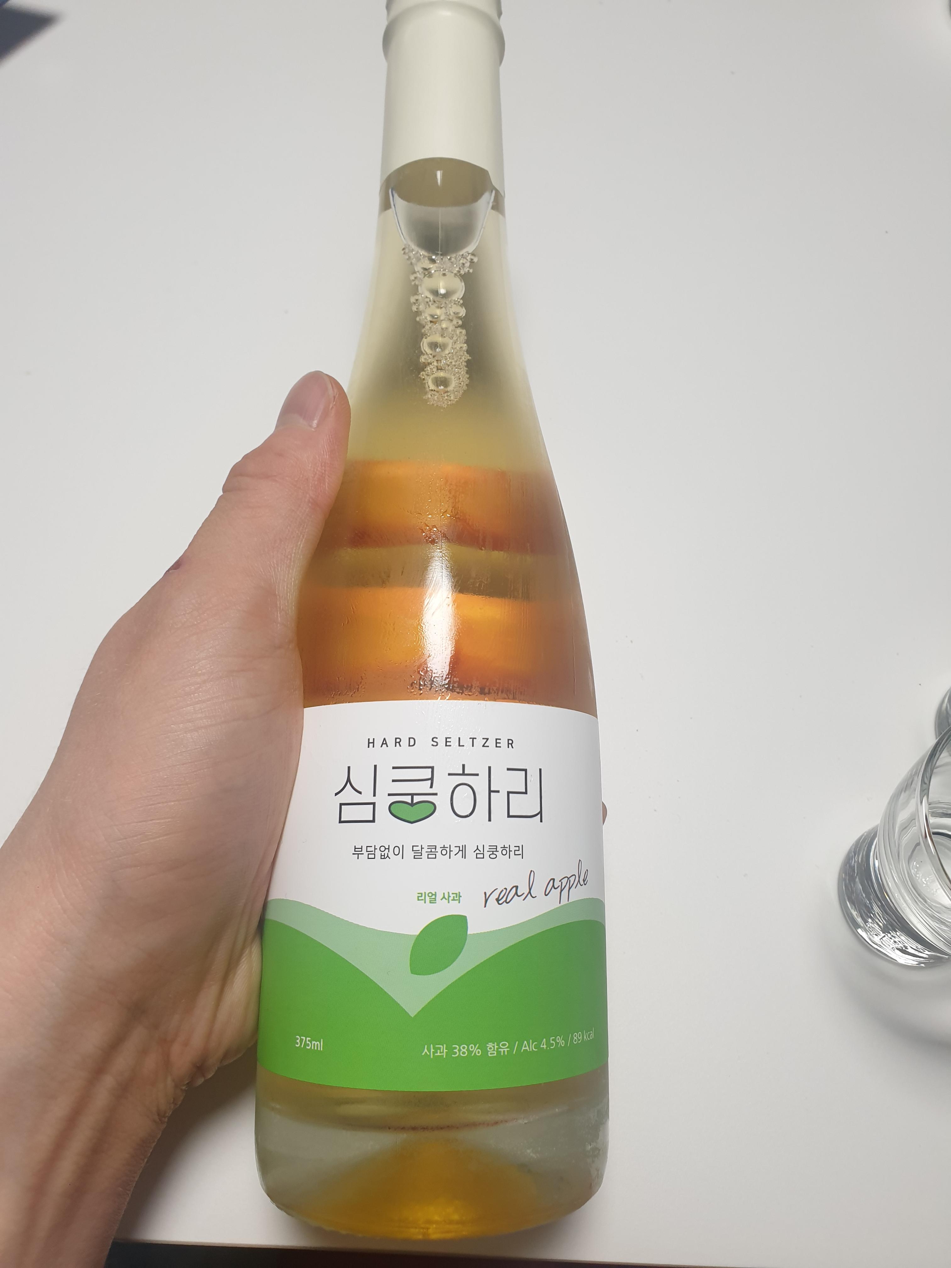 입에 딱 마셨을 때는 탄산감 있는 사과쥬스 같아요