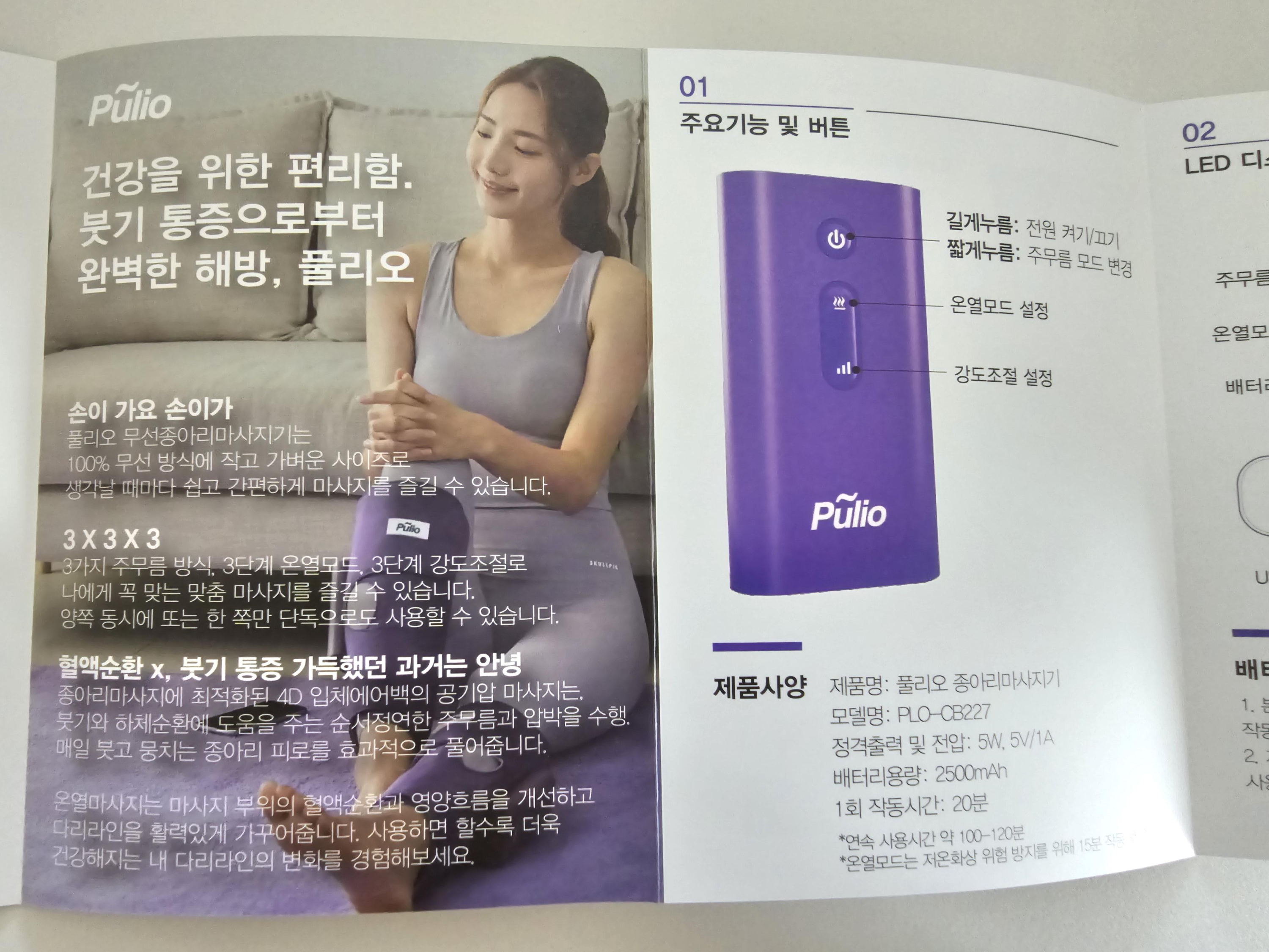 풀리오 종아리 마사지기 사용설명서