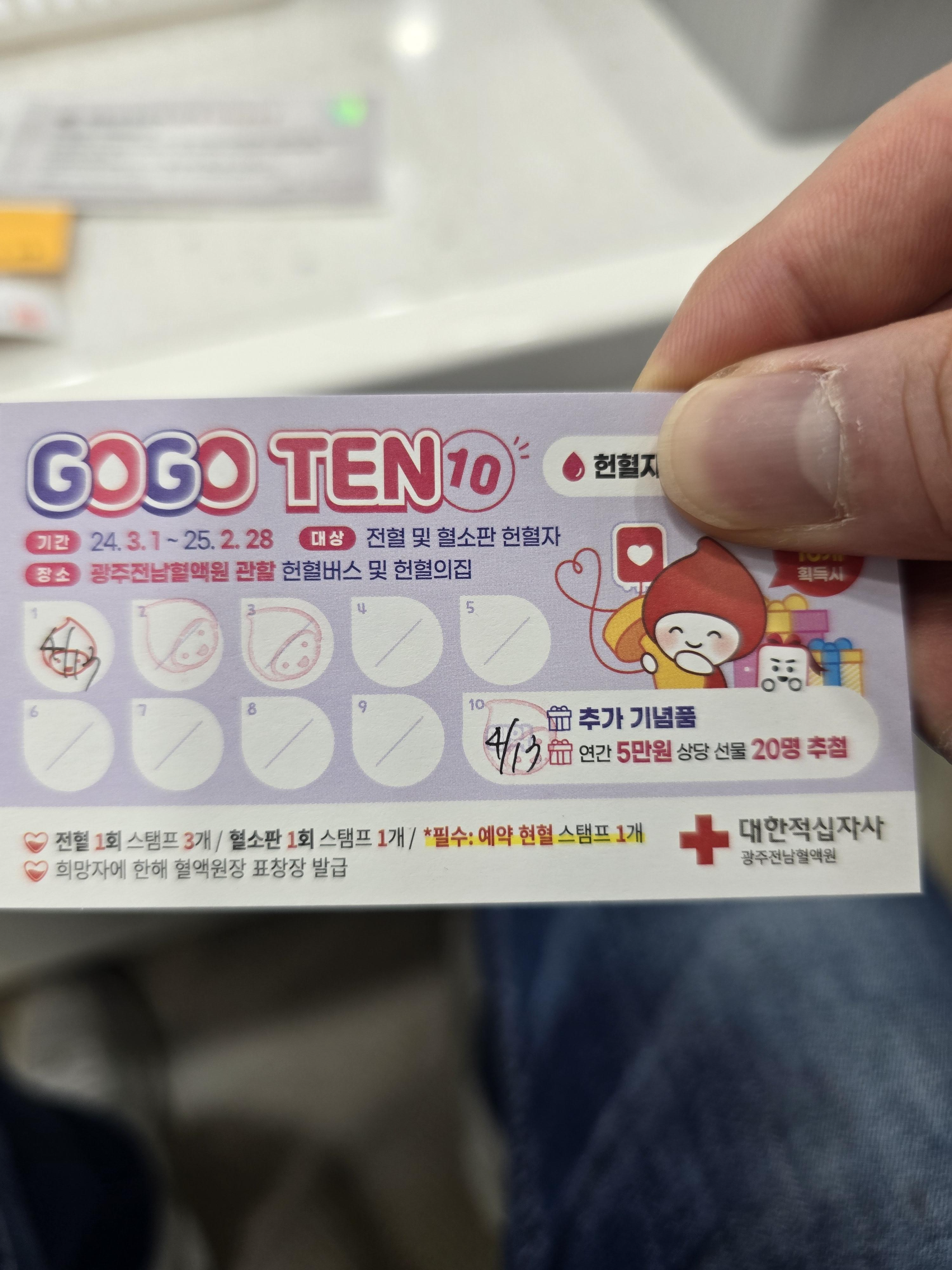 광주전남 혈액원 GO GO TEN 이벤트