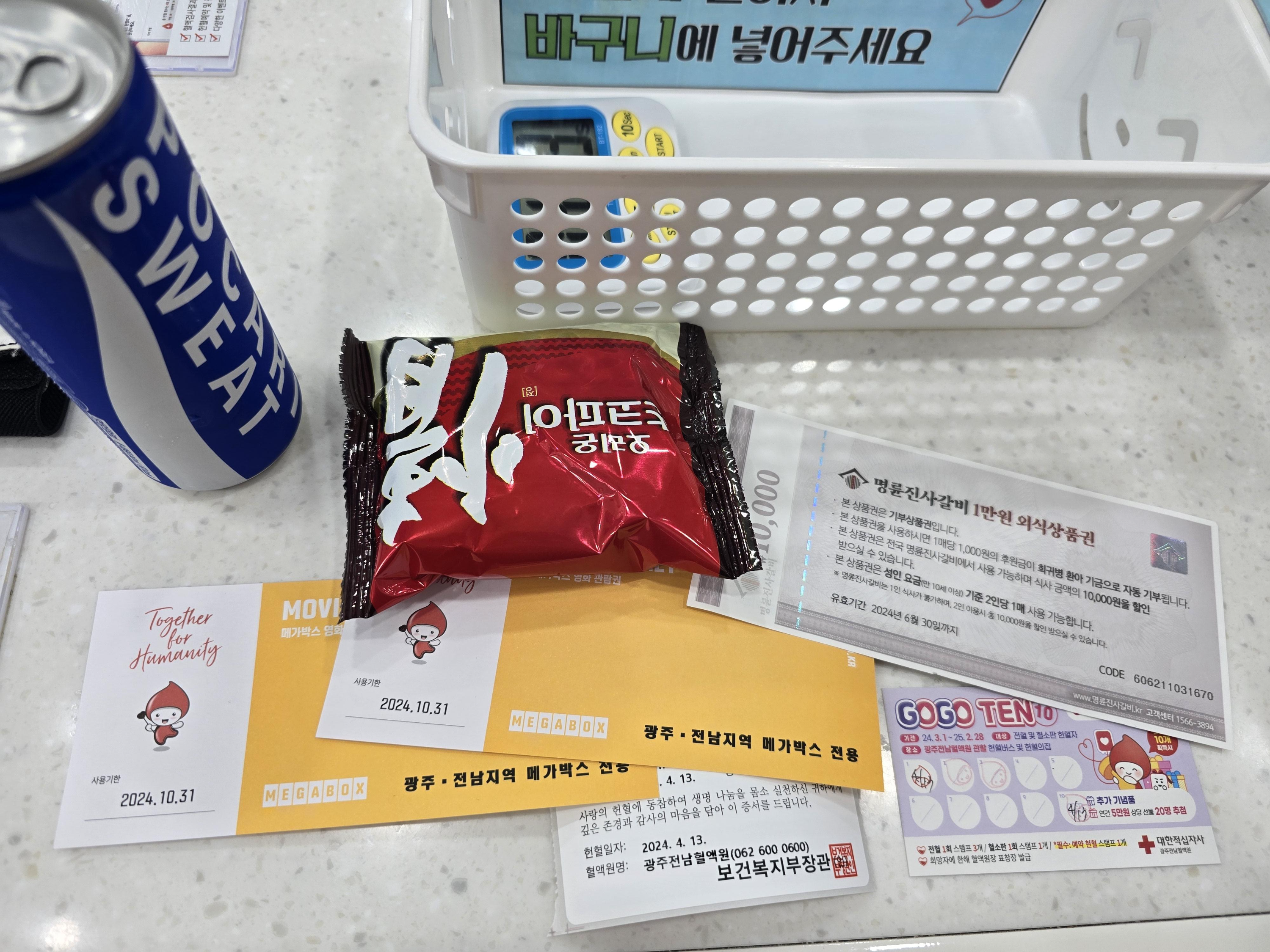 헌혈 완료 기념품도 받았어요