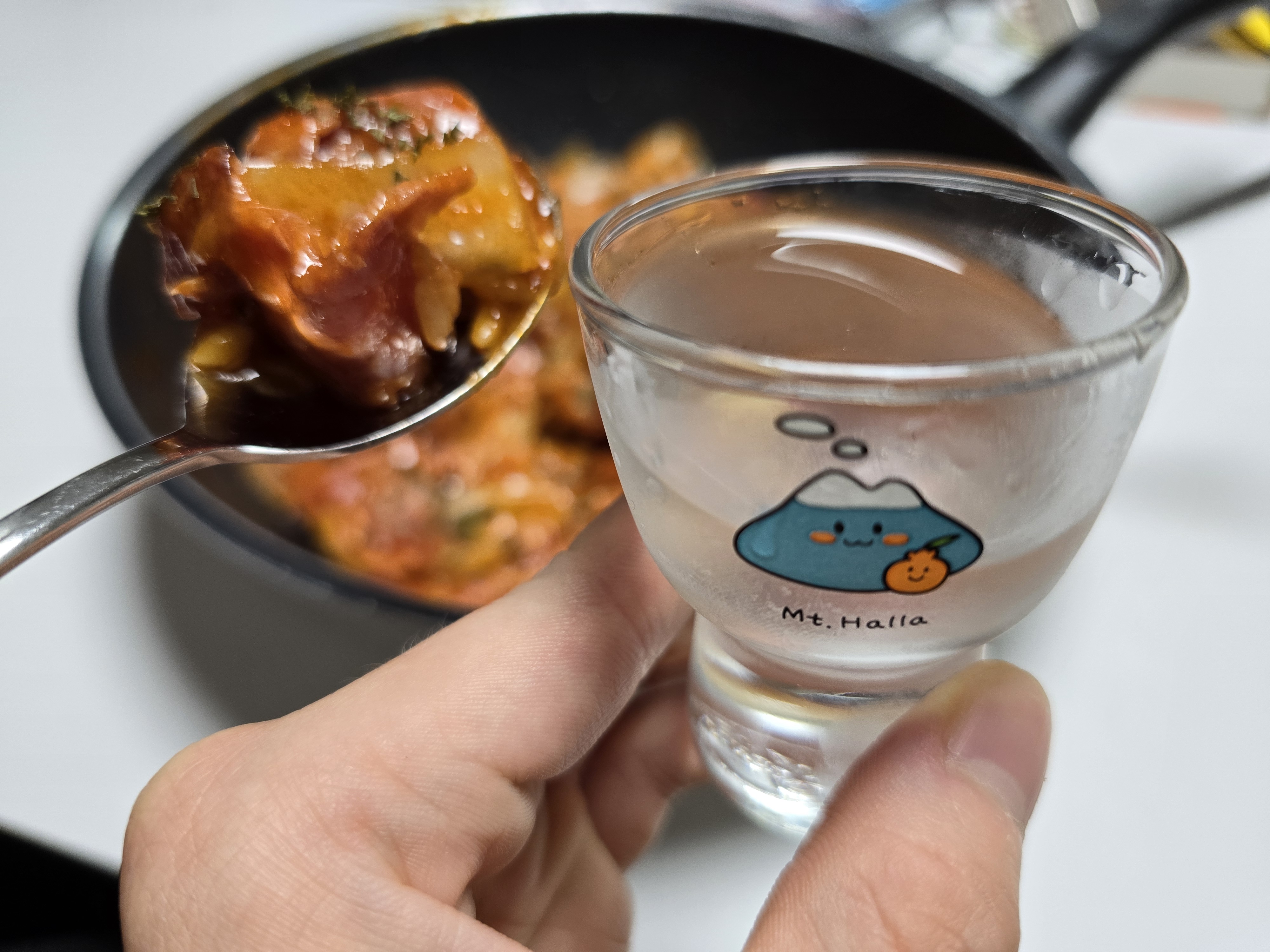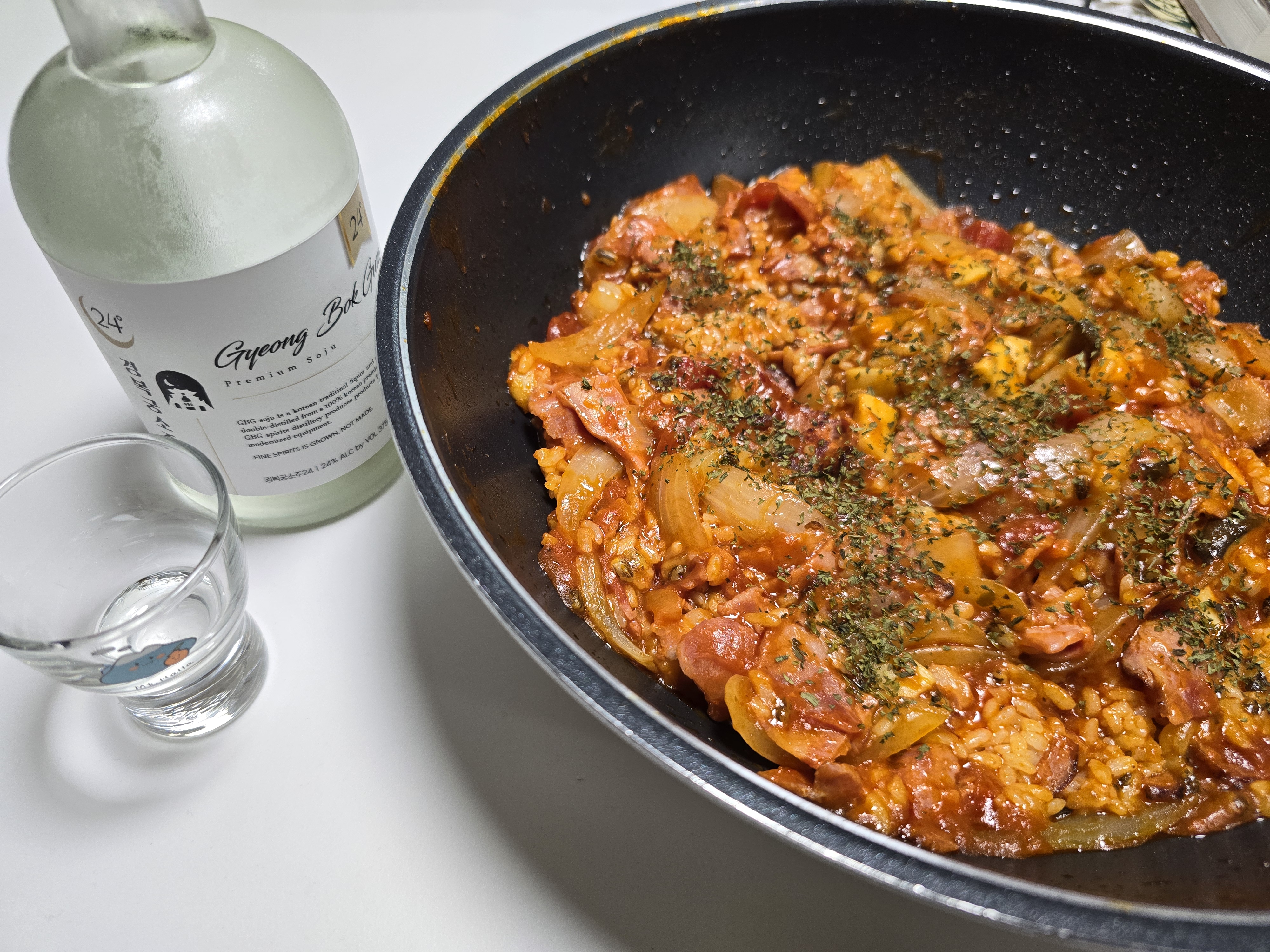 저녁을 먹으려는데 술 생각이나 증류식 소주를 한 잔 곁들였어요