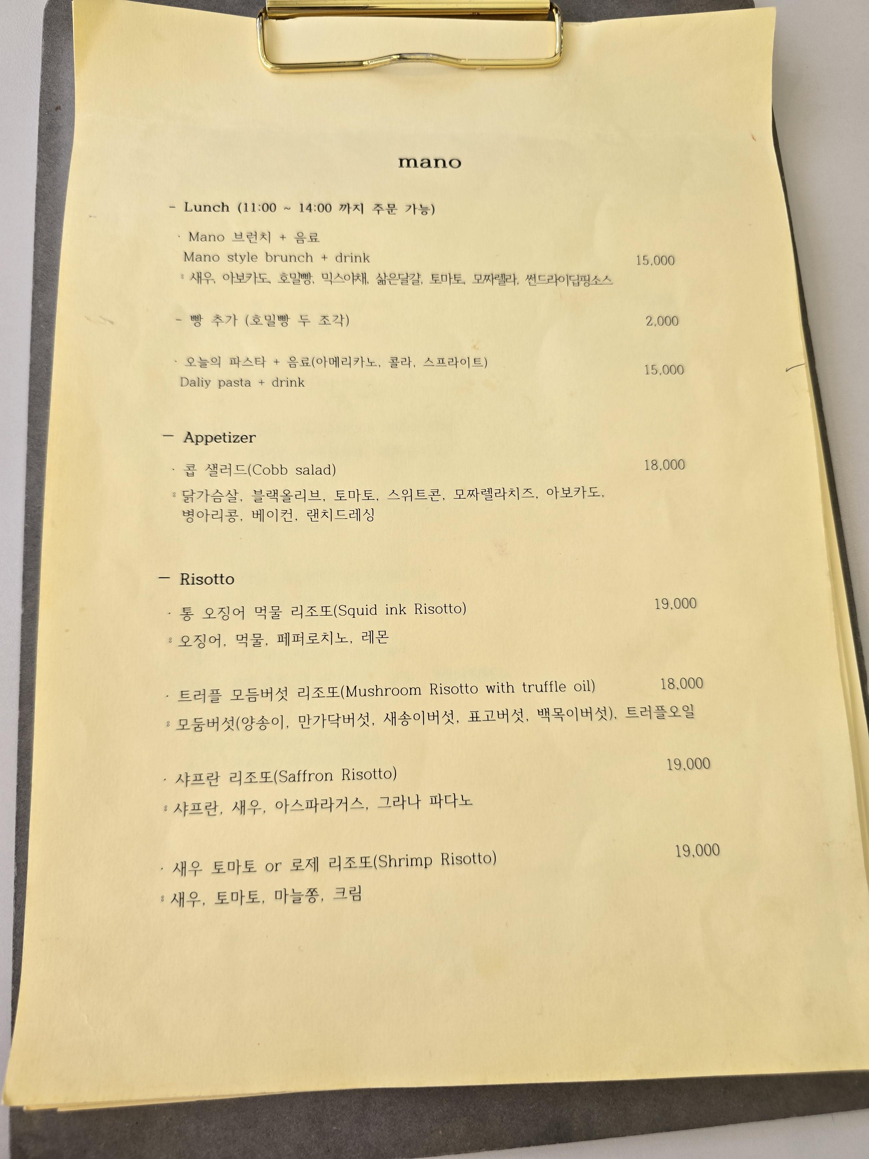 마노(mano) 이탈리안 레스토랑을 찾았어요