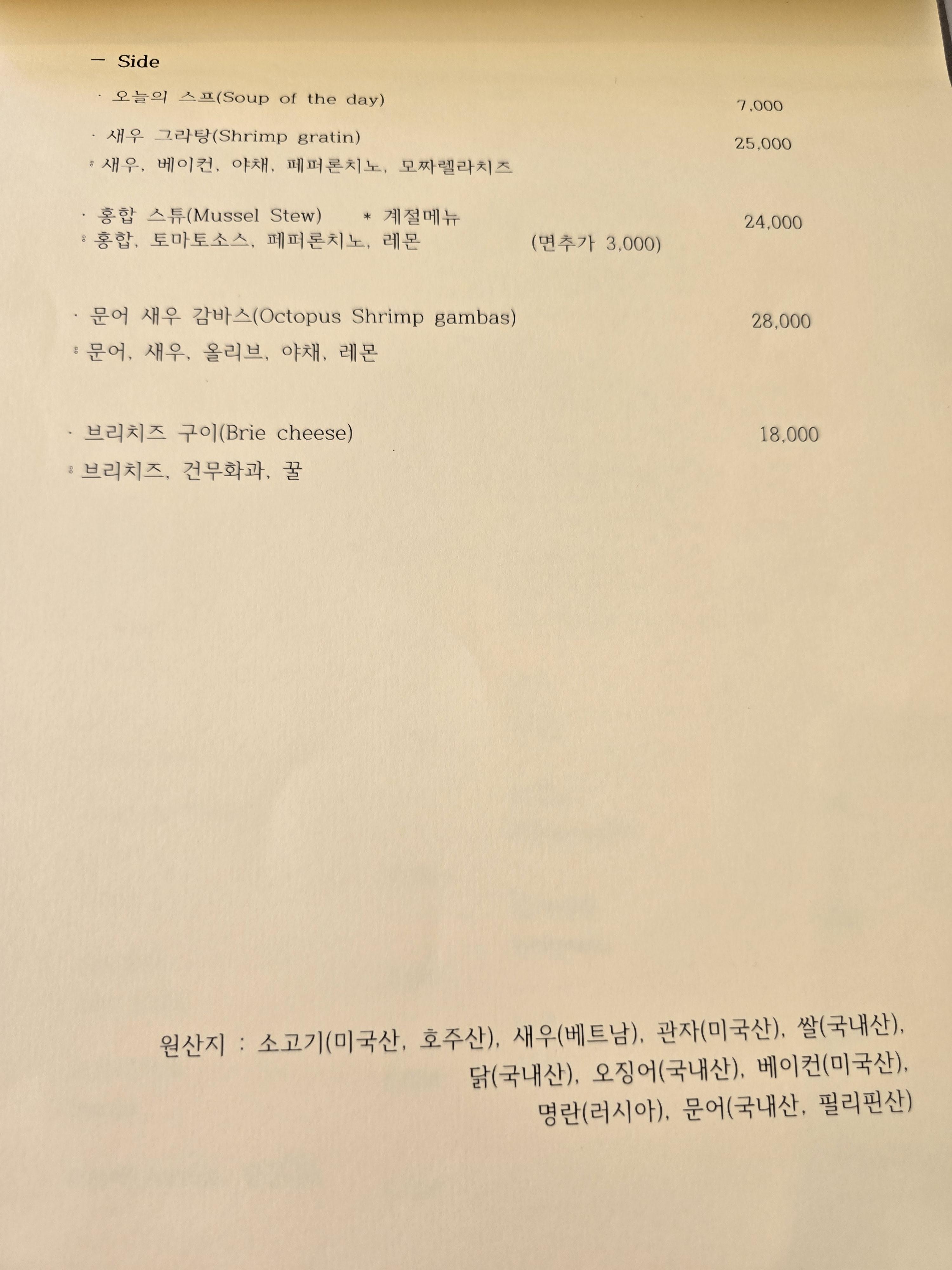 와인 메뉴판이 따로 있었는데 사진은 못 찍었어요