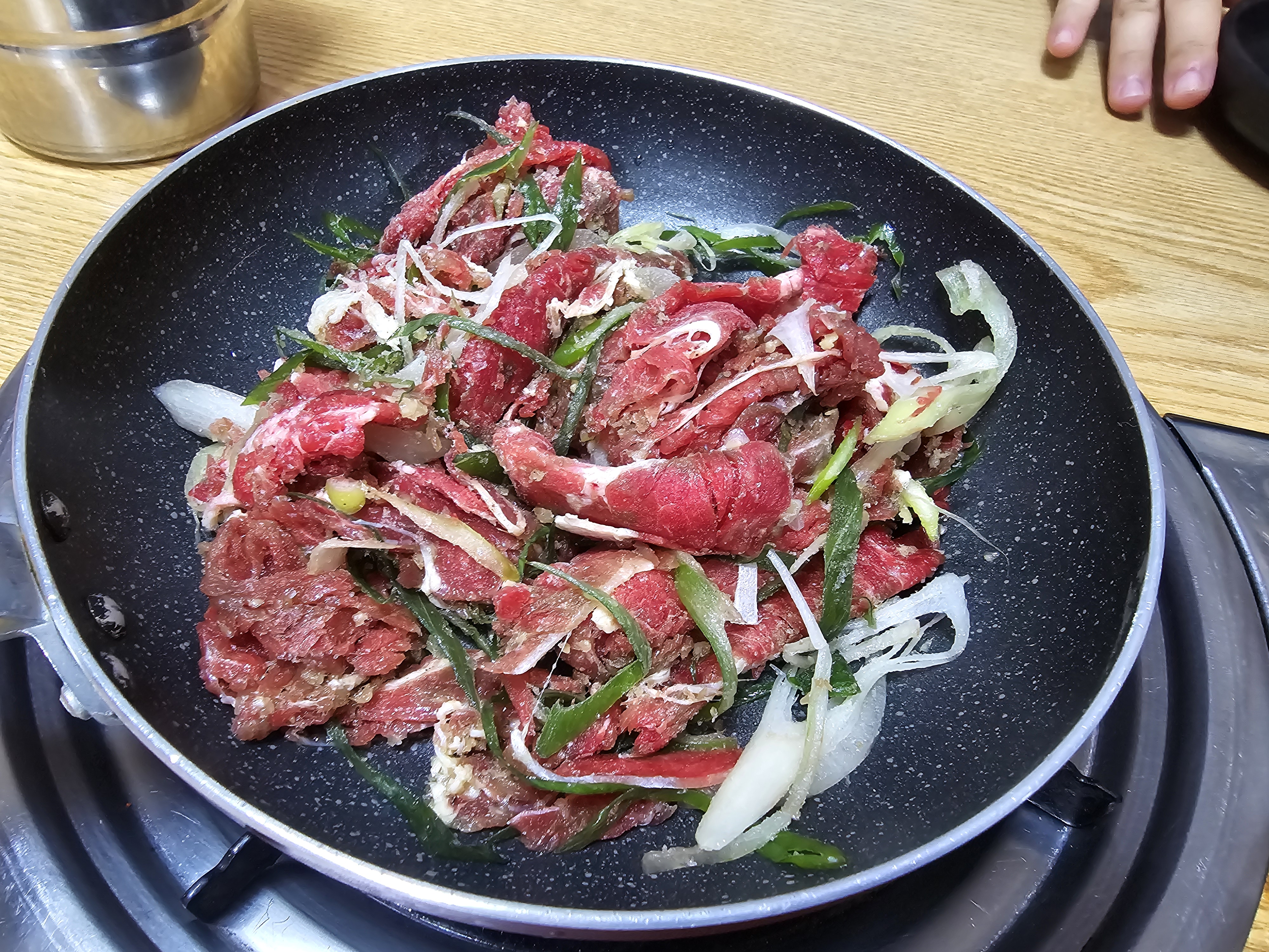 먼저 나온 불고기를 열심히 익히고 찍은 사진입니다