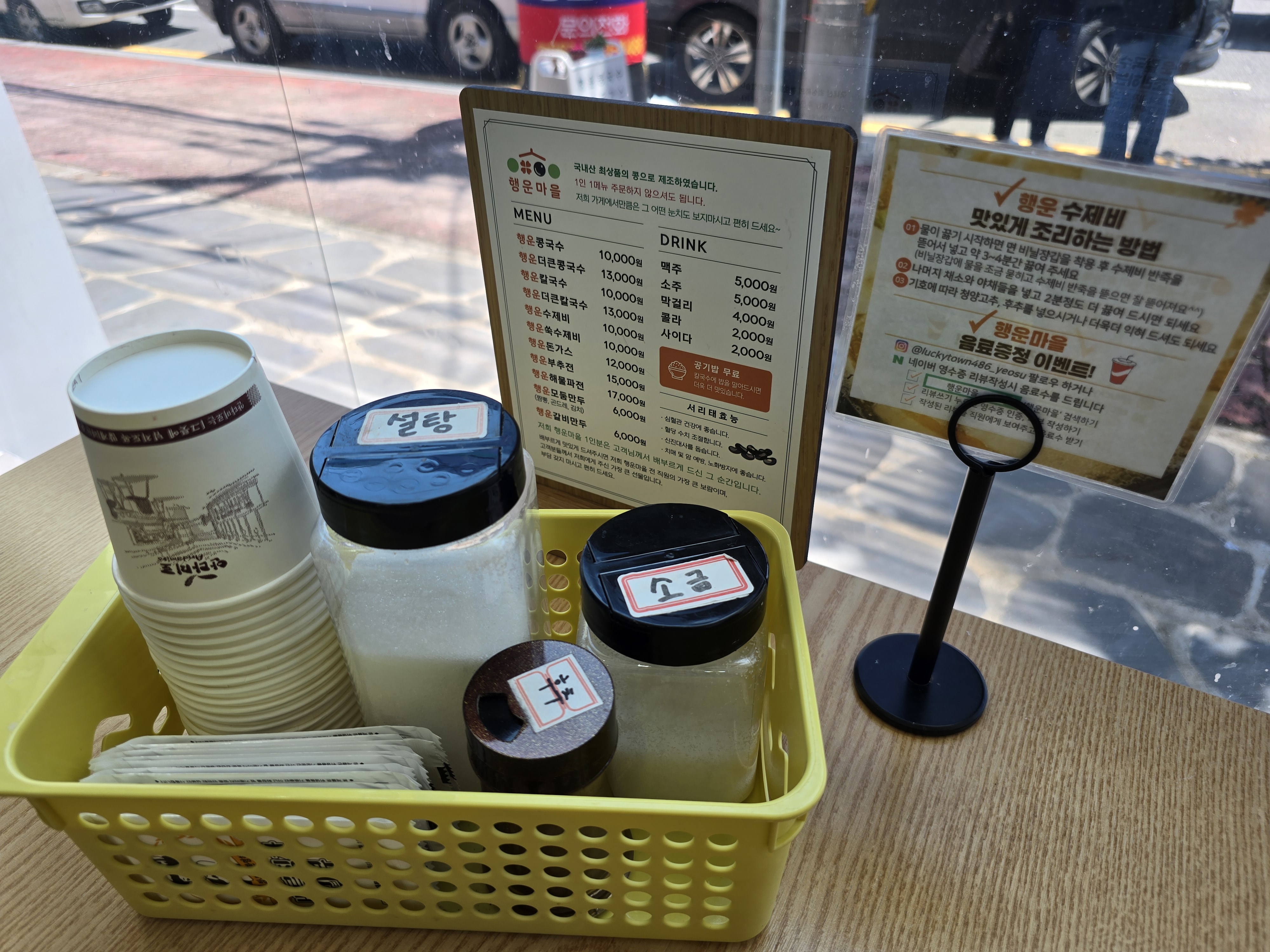 콩국수를 판매하기 때문에 아마 설탕과 소금이 있고